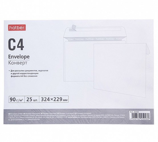 Конверт С4 229*324 белый силиконовая лента (2016 г.)