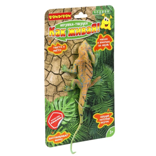 Реалистичная тянучка ЯЩЕРИЦА с сыпучим наполнителем выглядит как живая! Игрушка из серии Чудики от Bondibon тренирует мелкую...