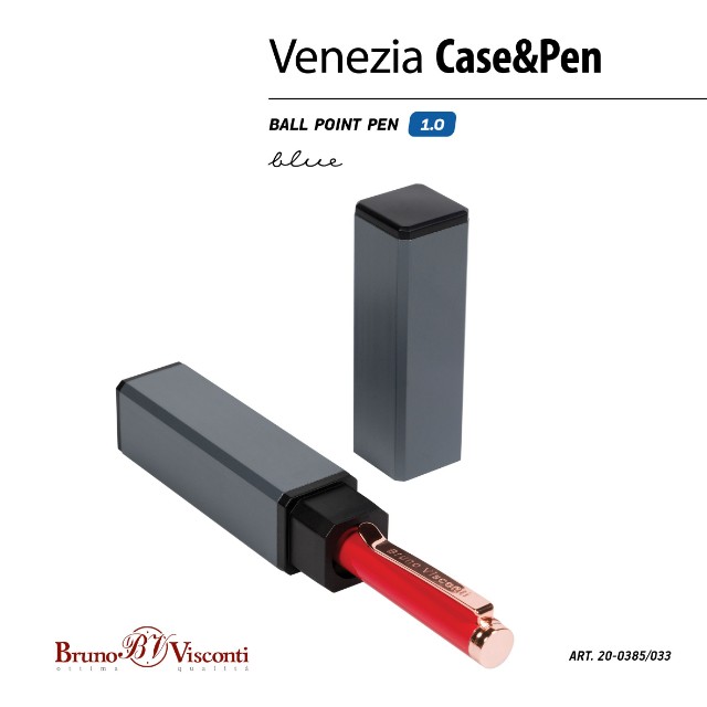 Ручка подар шар BV Portofino синяя 1мм (корпус серый, футляр черный) (2025 г.)
