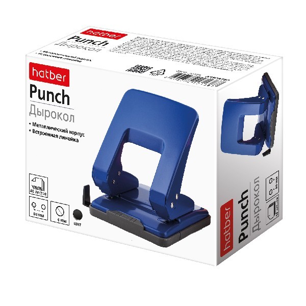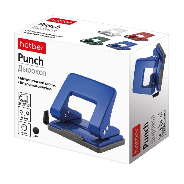 Дырокол 10л Hatber с линейкой Ассорти метал (2024 г.)