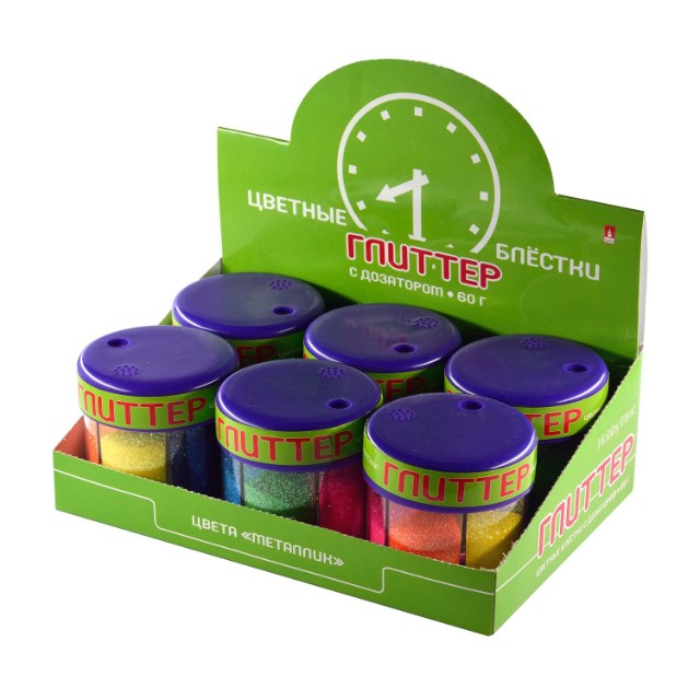 Творч Глиттер для декора с дозатором 6цв 60г Яркие цвета микс (2024 г.)