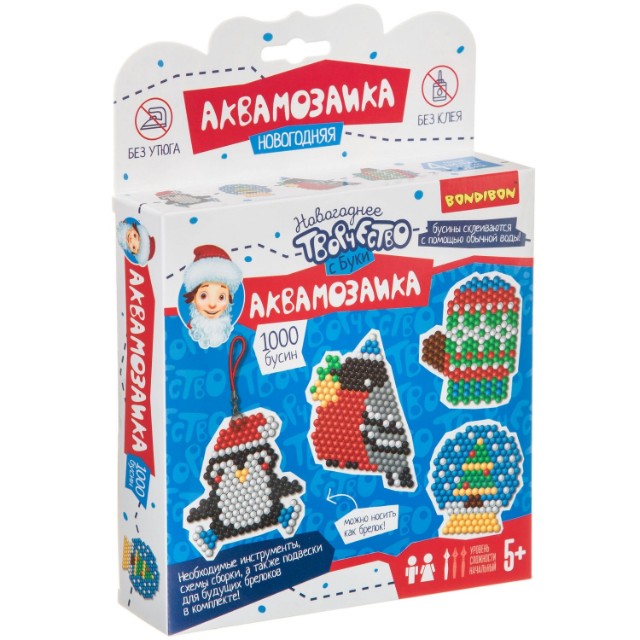 Новогодняя аквамозаика - волшебный творческий набор! Разложите цветные шарики по трафарету, слегка смочите их водой, дайте...