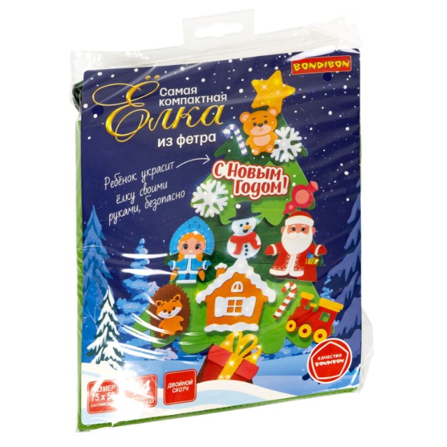 Творч Фетр Самая компактная ёлка из фетра 75*50см (+ 14 игрушек на липучках) (2023 г.)