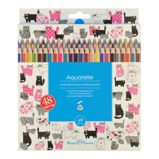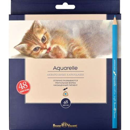 Карандаши цветные 24 цв акварел BV Aquarelle треуг, мет. коробка (2024 г.)