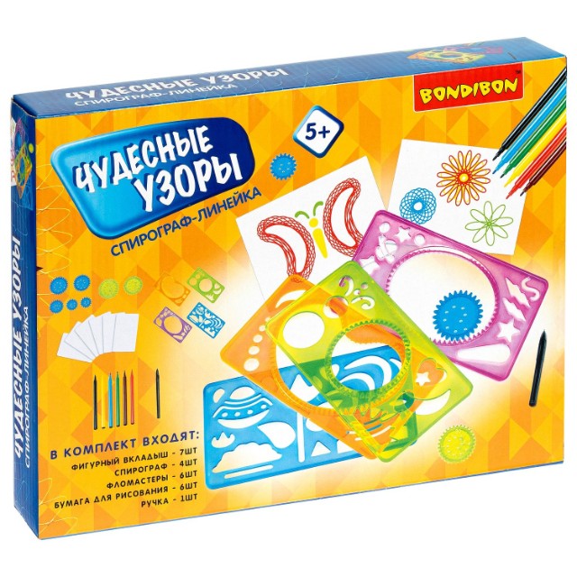 Линейка-спирограф "ЧУДЕСНЫЕ УЗОРЫ" от ТМ Bondibon - это набор для творчества, который формирует у ребенка дизайнерские и...