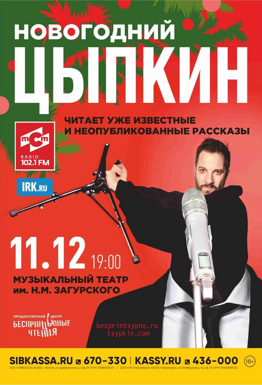 11 декабря писатель Александр Цыпкин приедет в Иркутск со специальной праздничной программой «Новогодний Цыпкин». Со сцены прозвучат истории, которые мало кто слышал. Александр обещает прочесть рассказы, уже ставшие хитами, а также отрывки из нового сборника « GoodNight, America, О».