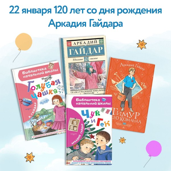 22 января исполняется 120 лет со дня рождения Аркадия Гайдара – русского и советского писателя и журналиста, автора повестей о Тимуре Гараеве, рассказа «Чук и Гек» и множества других ярких произведений для детей.