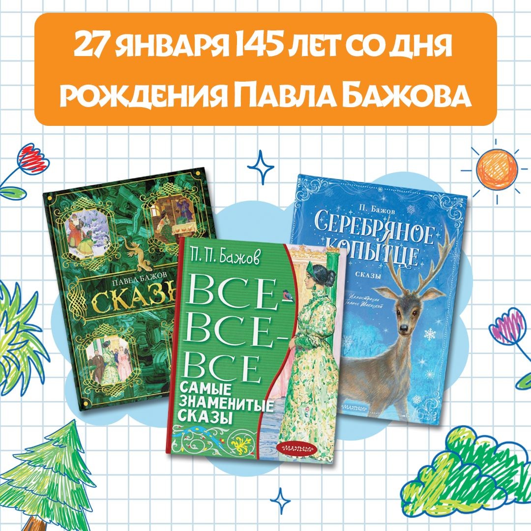 В издательстве АСТ выходят сборники сказов Павла Бажова: «Все-все-все самые знаменитые сказы», «Серебряное копытце. Сказы» и «Сказы». Удивительный певучий язык, завораживающие природные красоты Урала, добрые и честные герои, роскошные иллюстрации – такие книги не только станут прекрасным подарком ребёнку и украшением домашней библиотеки, но и познакомят детей и взрослых с богатой природой и мифологией родной страны.