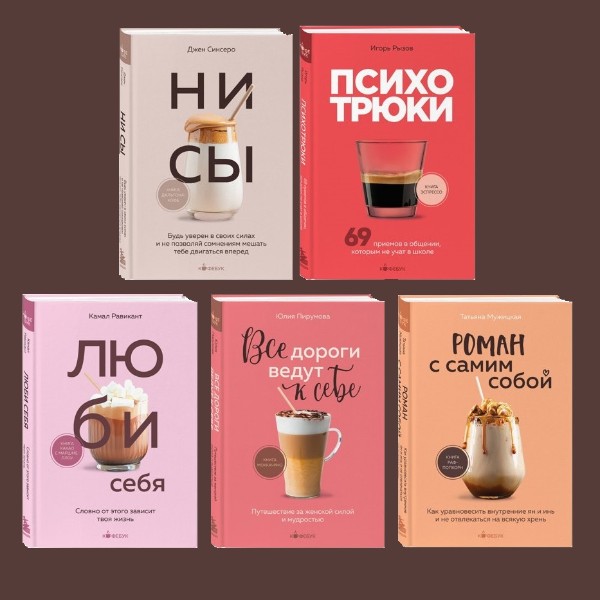 Новая кофейная серия, в которой собраны бестселлеры в мини-формате. ""НИ СЫ"", ""ЛЮБИ СЕБЯ"", ""ИДИ ТУДА, ГДЕ СТРАШНО"" и другие хиты в уникальном оформлении по цене одной чашки кофе - Серия «Кофебук. Книги которые бодрят и согревают»!