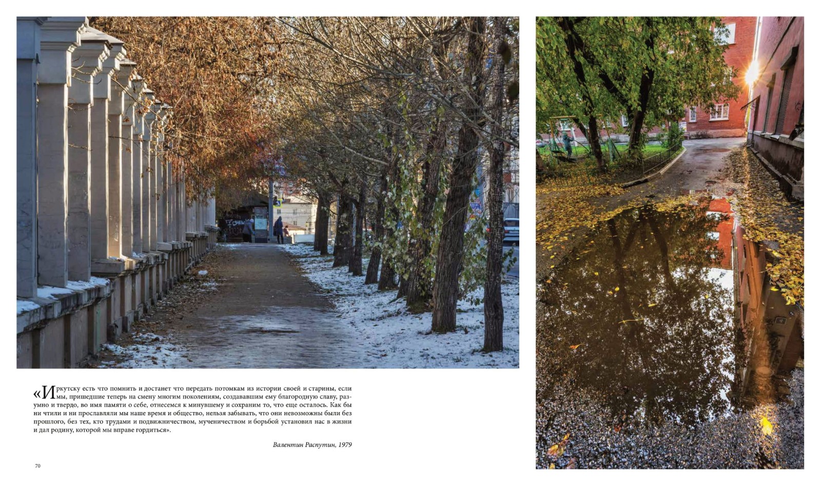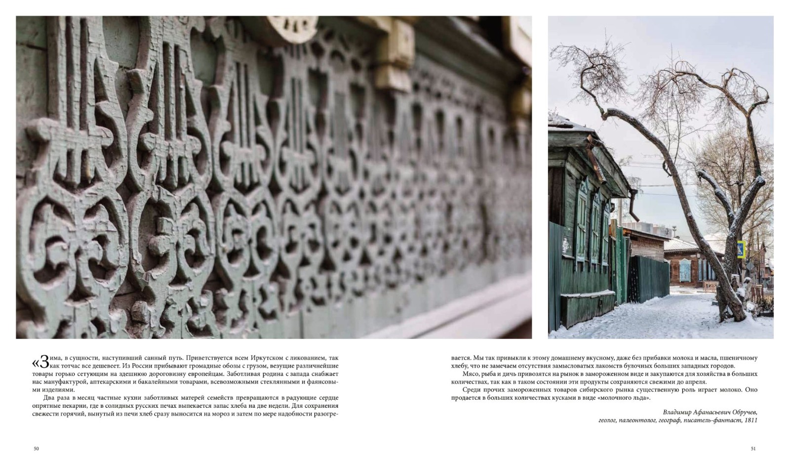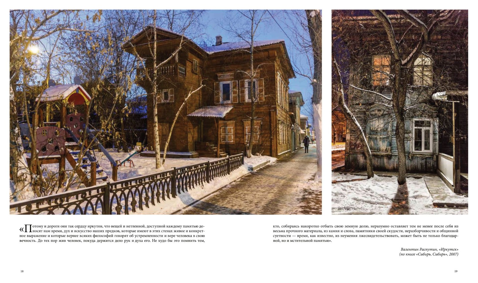 Фотопутешествие сопровождают отрывки из писем, дневников, воспоминаний об Иркутске разных веков, а также авторские тексты журналиста Ольги Соболевой.