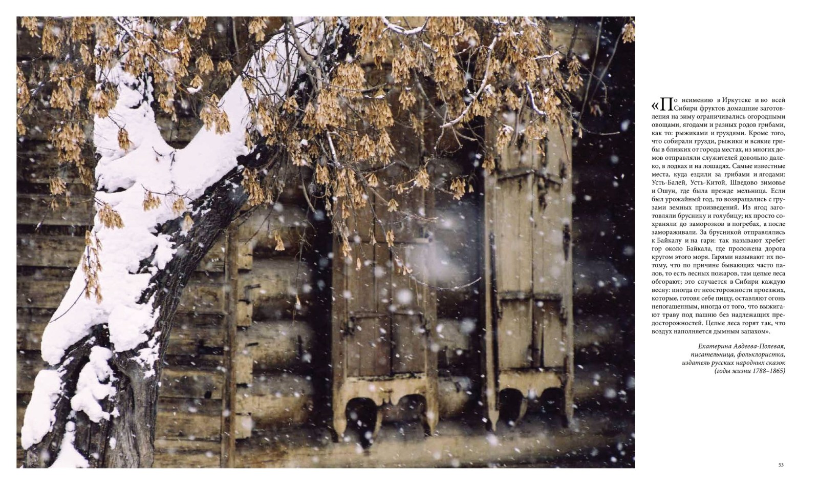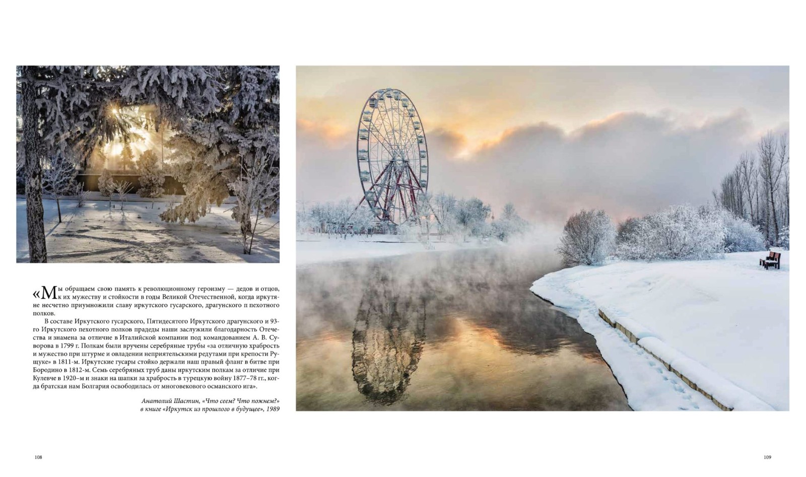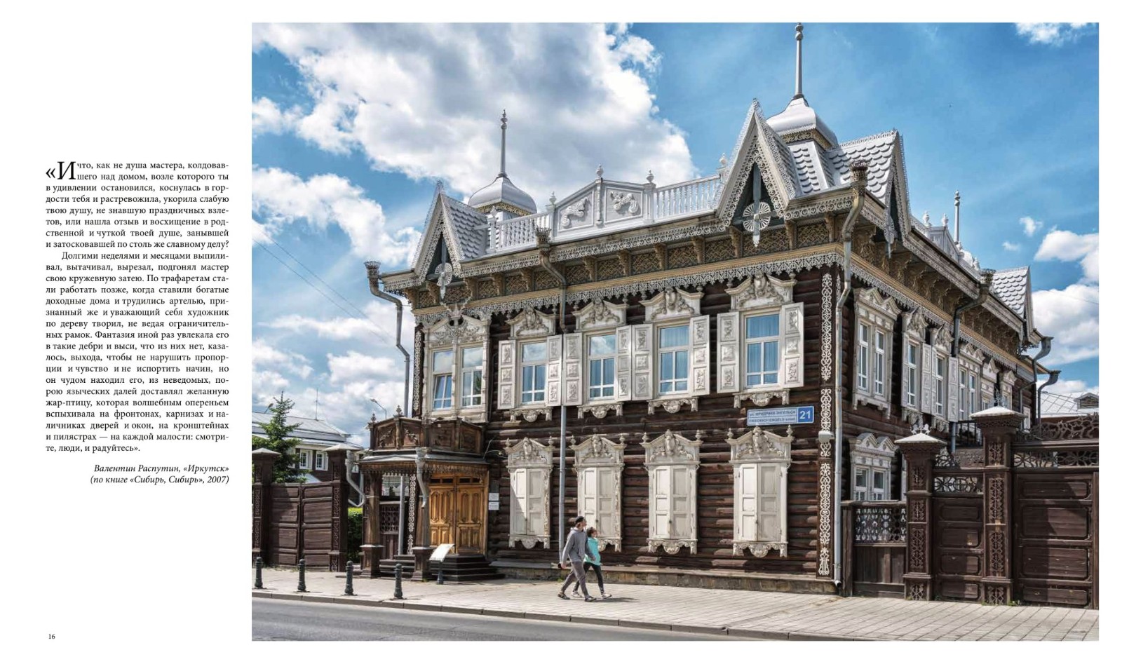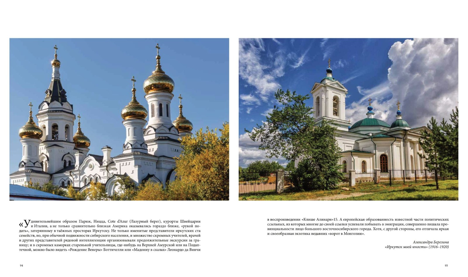 Фотопутешествие сопровождают отрывки из писем, дневников, воспоминаний об Иркутске разных веков, а также авторские тексты журналиста Ольги Соболевой.