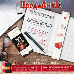 Дарим вкусный комплимент при покупке ежедневников и блокнотов MOLESKINES на сумму от 1000 руб.