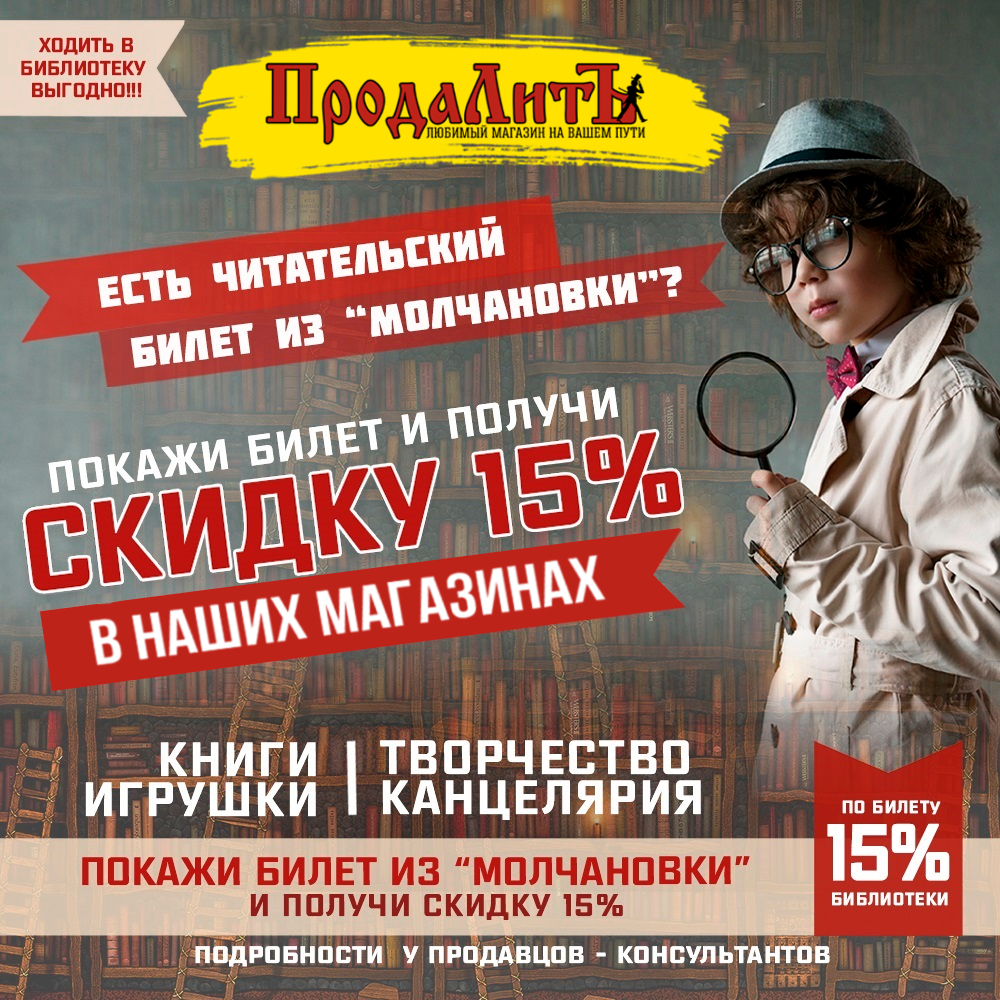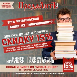 Для все читателей библиотеки им. И.И. Молчанова-Сибирского - скидка 15%!