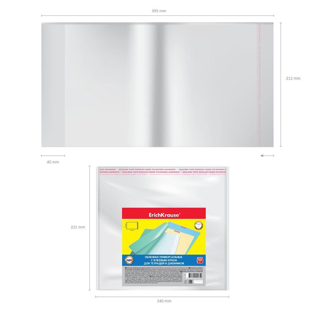 Обложка А5 универс 212*395 50мк для тетрадей и дневников, с клеевым краем ПВХ