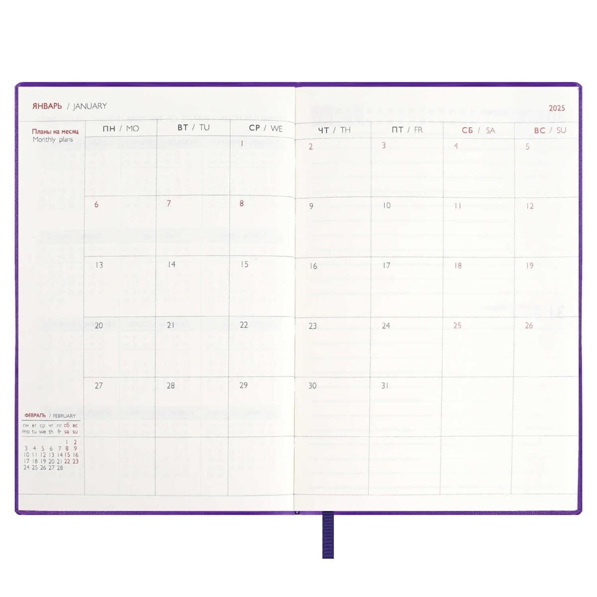 Ежедневник А6 2025г Escalada Бейбискин фиолетовый (кожзам
