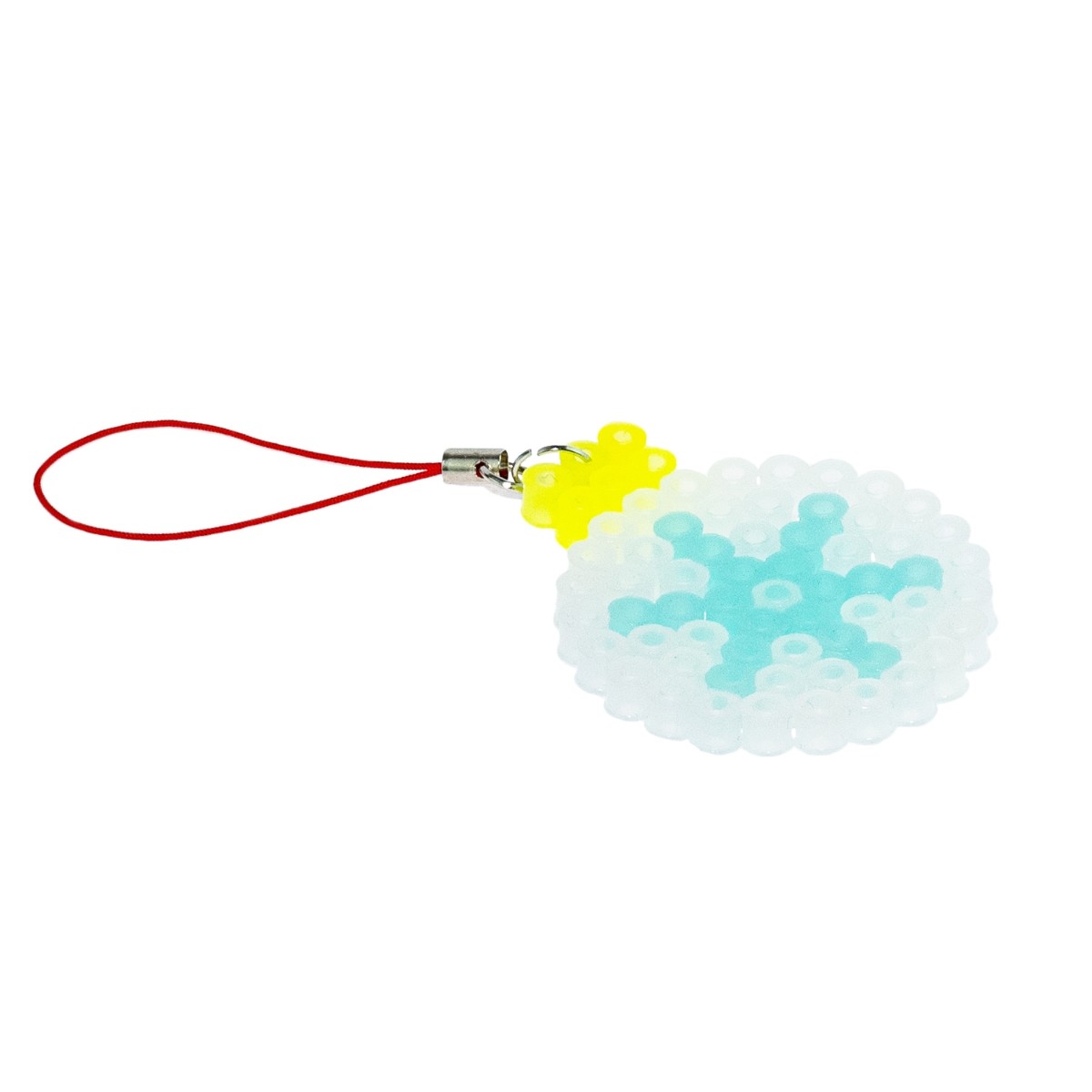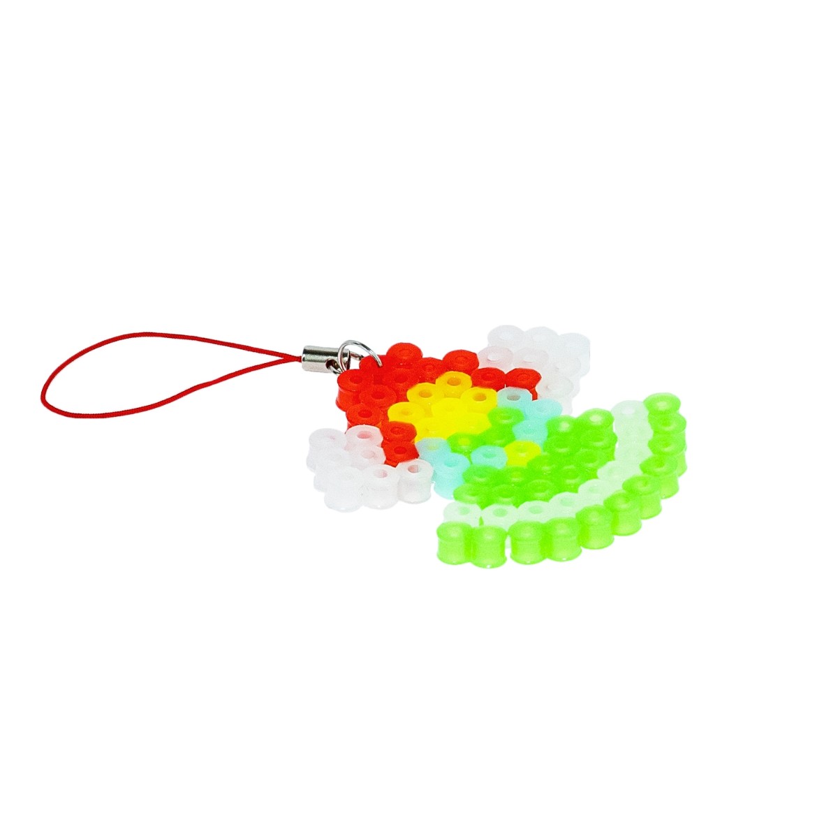 Помещаете схему под планшет и выкладываете по ней бусины. Проглаживаете все через кальку, даете изображению остыть и аккуратно снимаете фигурку с планшета. Прикрепляете подвеску и игрушка готова!