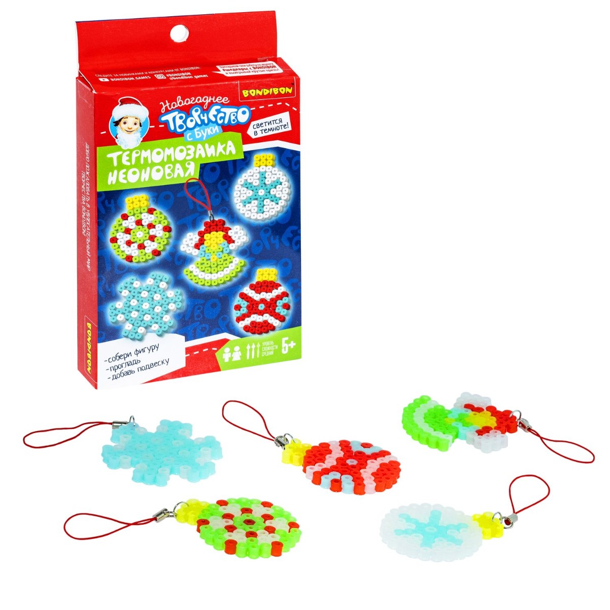 Покупайте набор для творчества ТЕРМОМОЗАИКА "ЁЛОЧНЫЕ УКРАШЕНИЯ" неоновые подвески-брелки 2D Новогоднее творчество с Буки Bondibon и украшайте свой дом креативными поделками, сделанными своими руками!