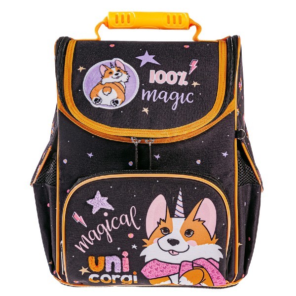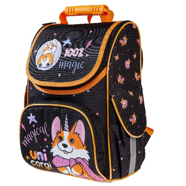 Ранец Hatber Волшебник Корги черный с оранжевым
