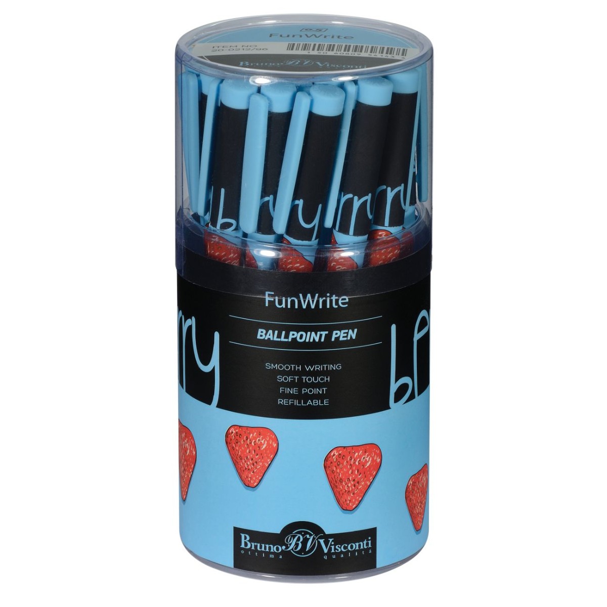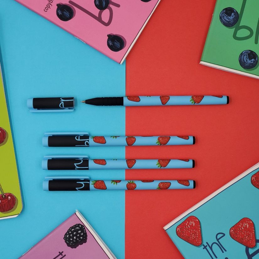 Ручка шариковая синяя BV FunWrite Ягоды. Графика. Клубника 0,5мм принт