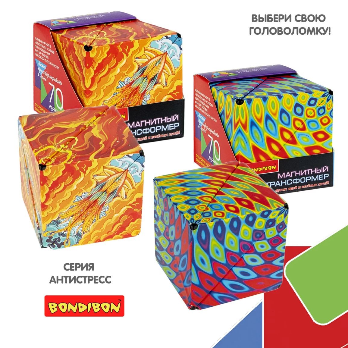 Яркая элегантная головоломка займет Ваш ум и руки на много часов! Магнитная игрушка-антистресс КУБ ТРАНСФОРМЕР 3D-МИСТИКА 3 от Bondibon предназначена для создания более 70 различных объемных форм. Куб состоит из пирамидок с магнитами, соединенных шарнирами, которые легко трансформируются в различные узоры, многоугольники, фигурки животных и многое другое. КУБ ТРАНСФОРМЕР 3D-МИСТИКА 3 расслабляет, успокаивает нервы, снижает уровень тревоги, а также стимулирует воображение, развивает зрительное восприятие и пространственное мышление. Компактный размер и легкий вес позволяют брать игрушку с собой, чтобы интересно провести время в дороге, в очереди, на перемене. Геометрический куб выбирают в качестве подарка для ребенка, для взрослого, даже для бабушки и дедушки. Возраст 6+ Соберите коллекцию из нескольких кубов, чтобы создавать сложные фигуры! Возможности такого магнитного конструктора ограничены только Вашей фантазией!