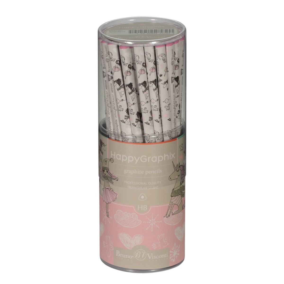 Карандаш ч/гр HB BV HappyGraphix Девочка и единорог. Сердечки б/ластика