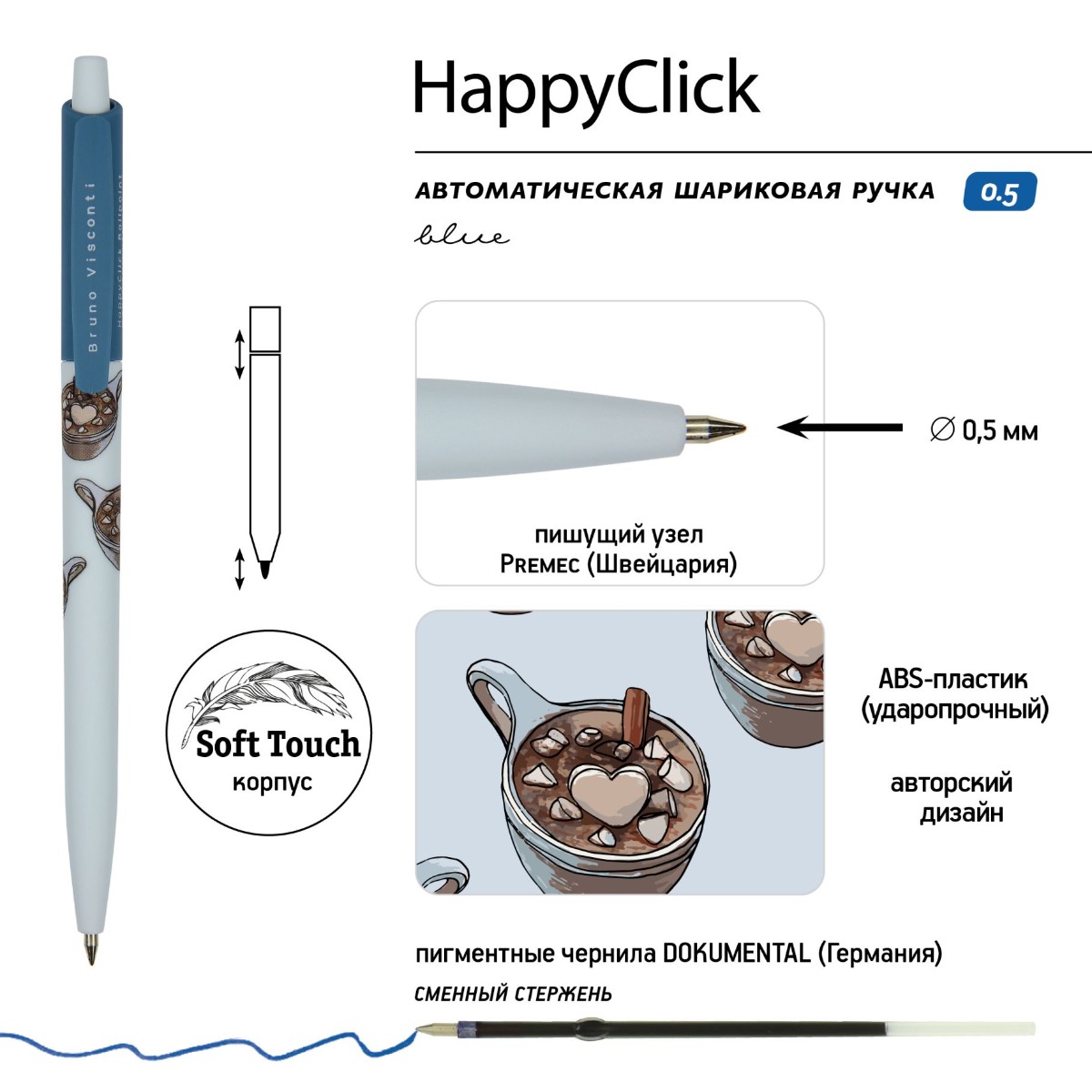 Ручка шариковая синяя BV HappyClick Кофемания. Горячий шоколад
