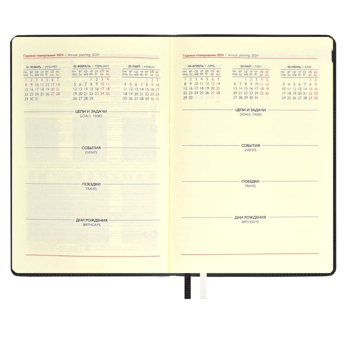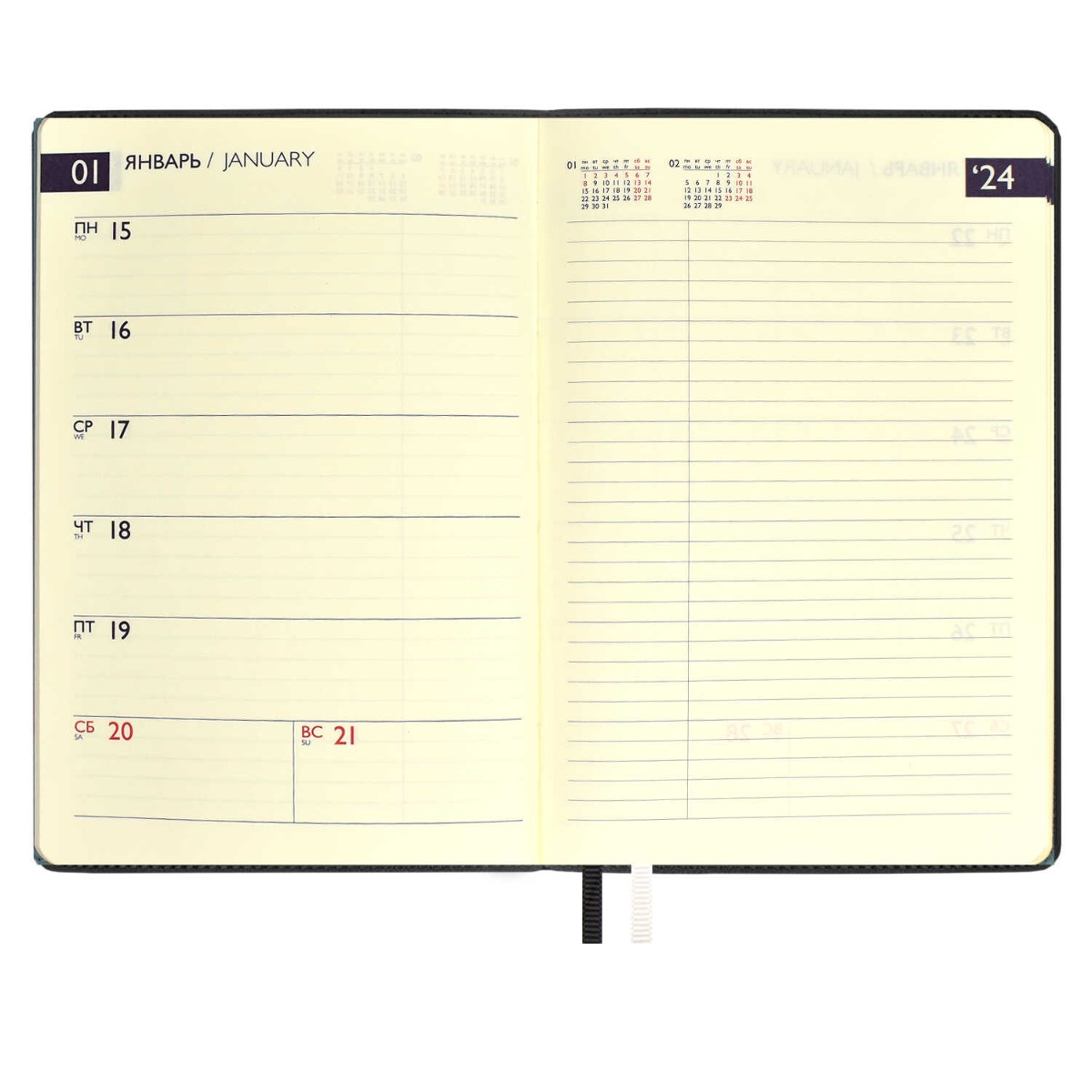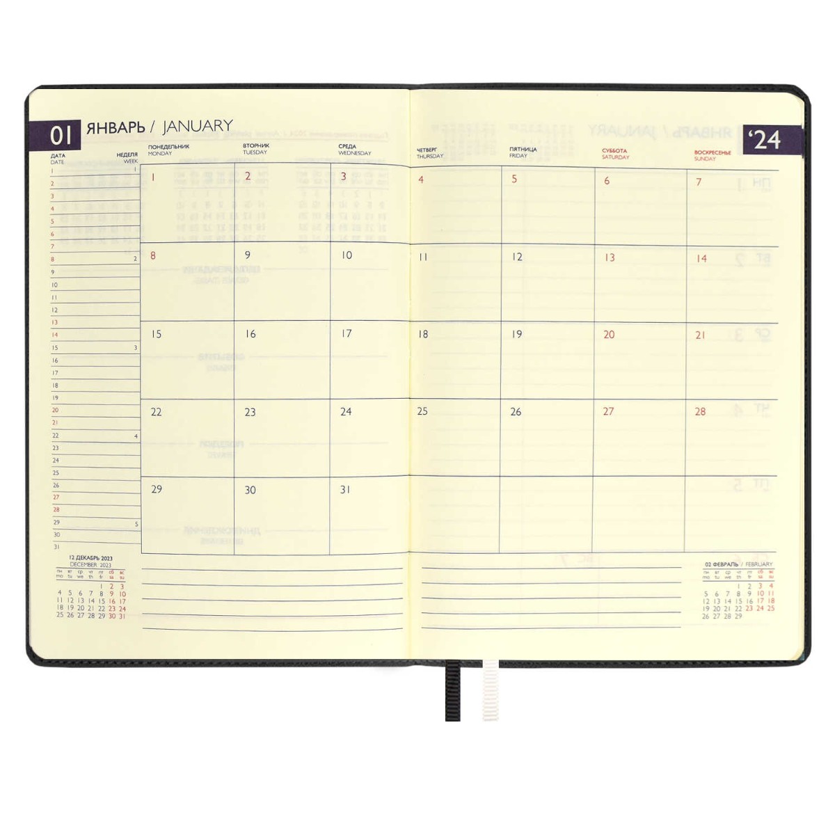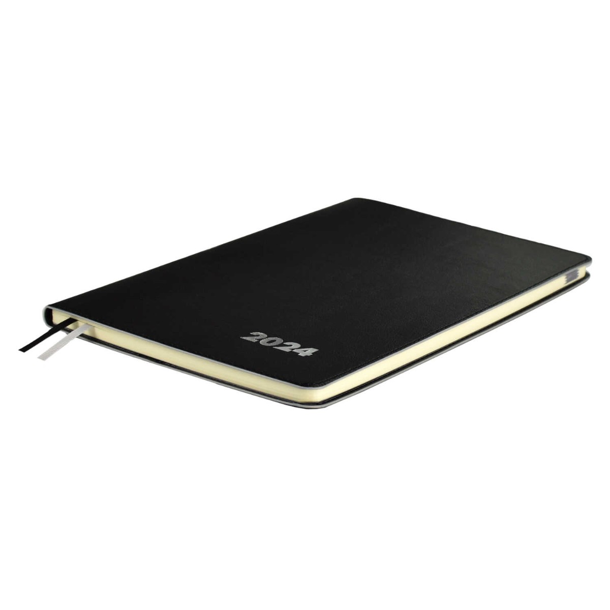 Еженедельник А5+ 2024г Флоттер черный (кожзам)