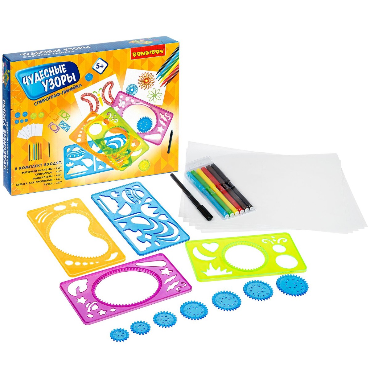 Линейка-спирограф "ЧУДЕСНЫЕ УЗОРЫ" от ТМ Bondibon - это набор для творчества, который формирует у ребенка дизайнерские и творческие способности, развивает изобразительные навыки. В процессе работы с набором у ребенка улучшается координация, развивается гибкость кисти, что в дальнейшем положительно повлияет на формирование почерка.