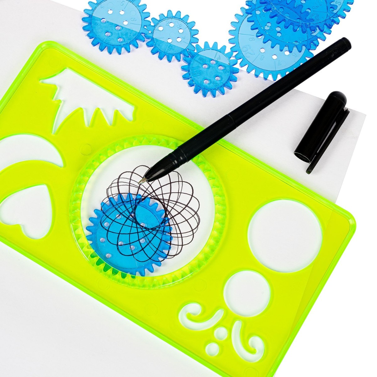 Для рисования необходимо зафиксировать лист бумаги на ровной поверхности, расположить на листе спирограф рельефной стороной вверх, вставить вкладыш внутрь линейки так, чтобы зубчики соединились с рабочим отверстием. Не отрывая фигурку от зубчиков линейки необходимо совершать плавные вращательные движения фломастером или ручкой, вставив их в одно из отверстий. Через несколько оборотов спиралевидного орнамента узор замкнется в начальной точке.