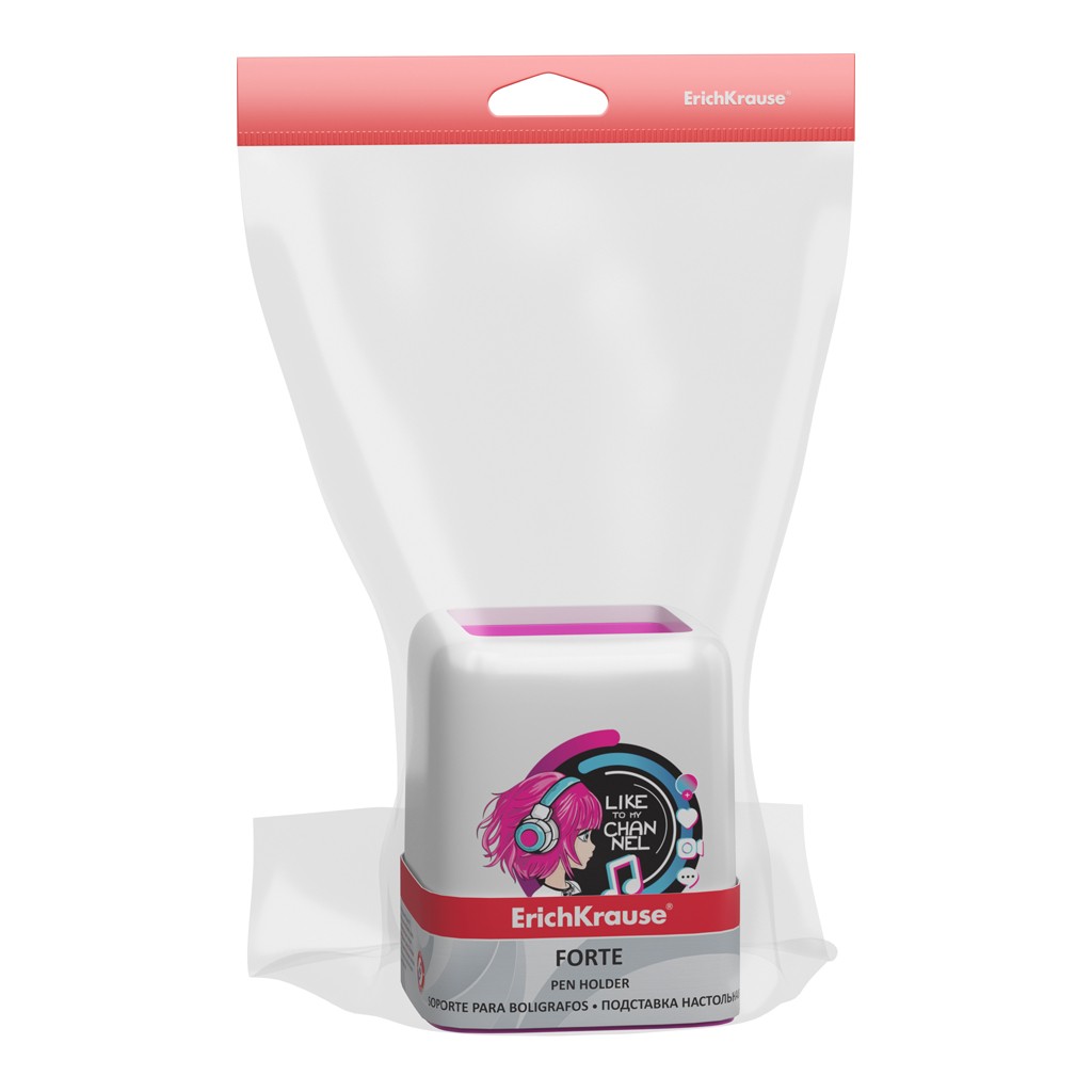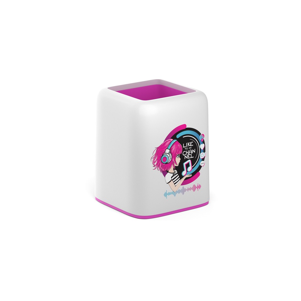 Подставка д/пиш. принадл. Стакан EK Forte, Top Blogger, белая с розовой неоновой вставкой 1отд