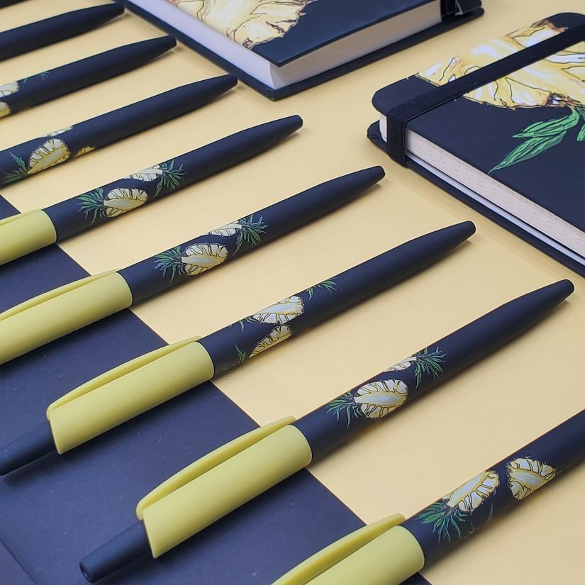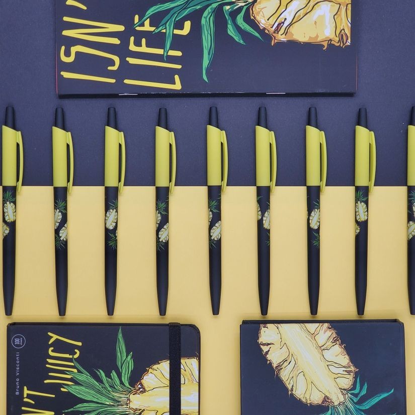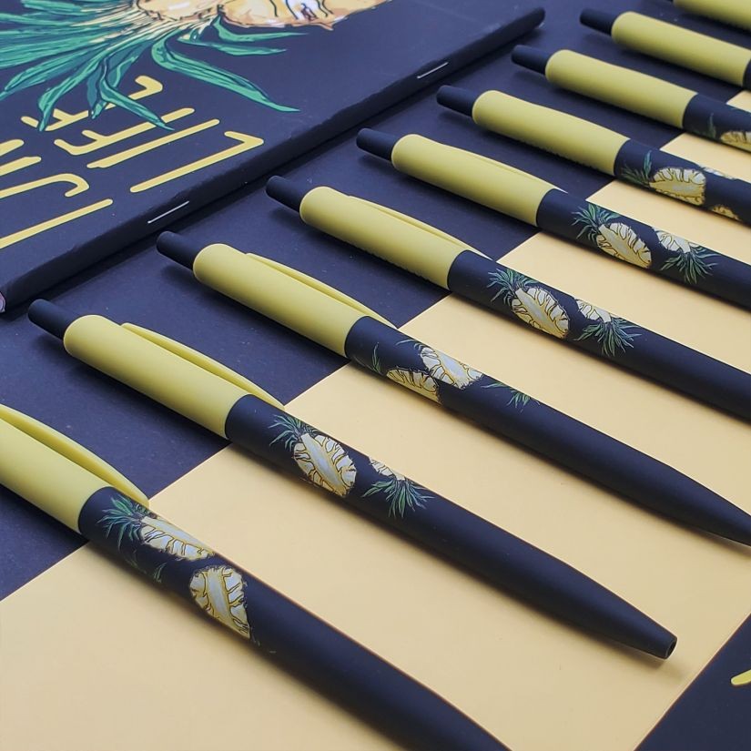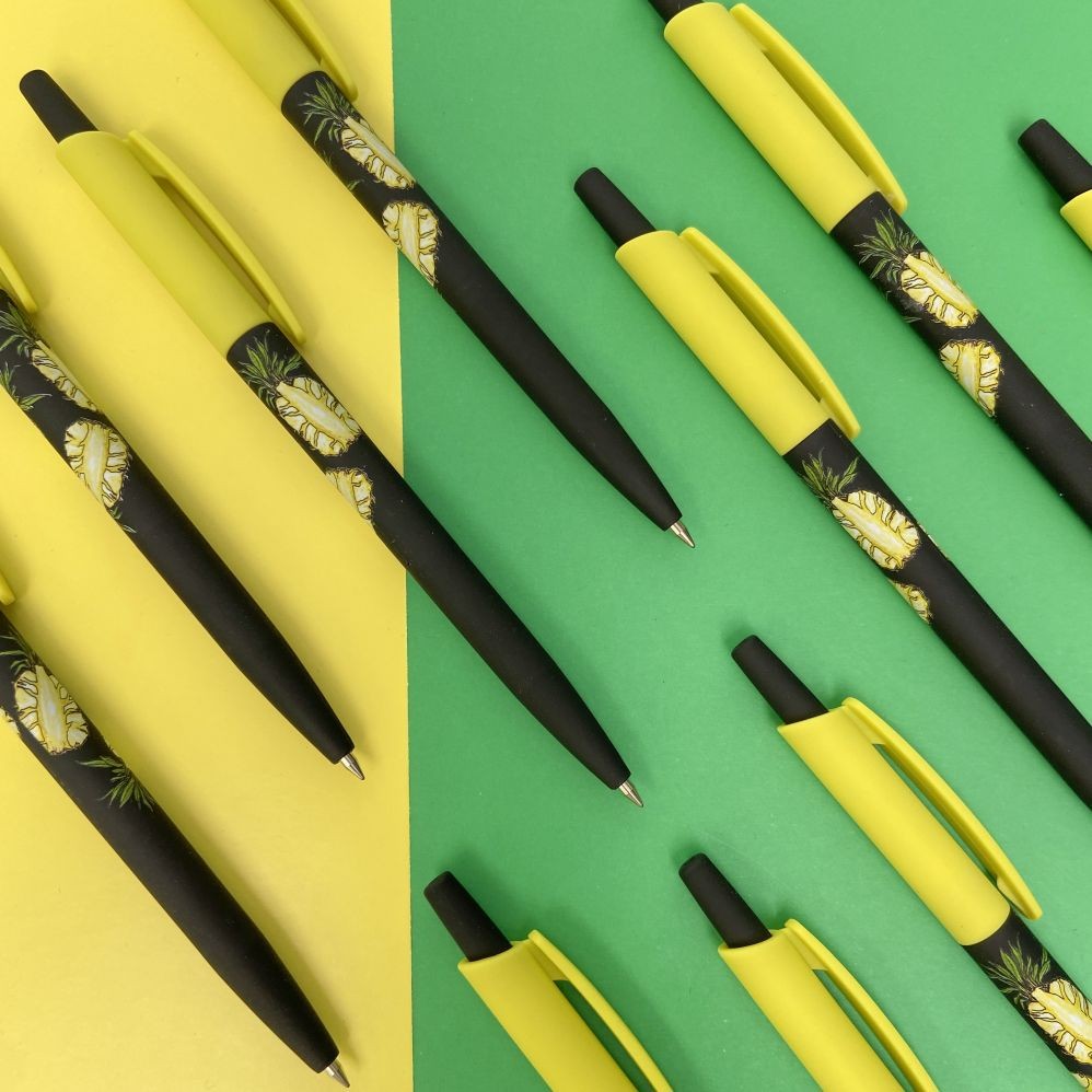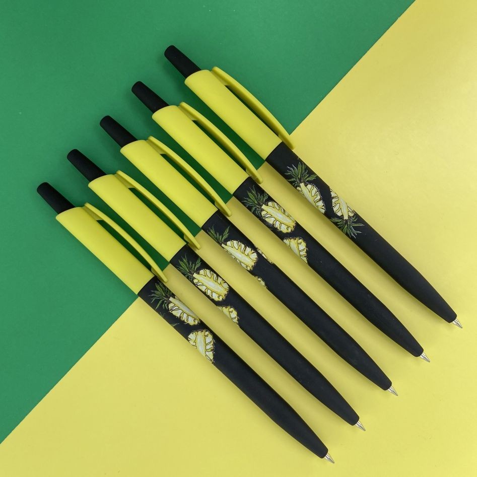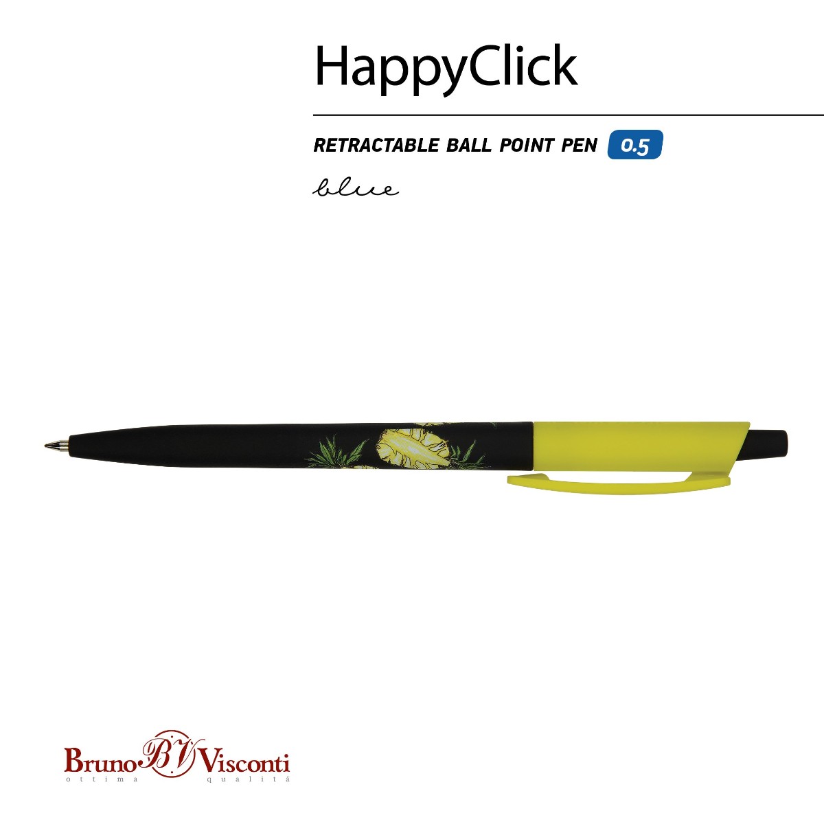 Ручка шариковая синяя BV HappyClick Fresh&Fruity Ананас 0,5мм принт