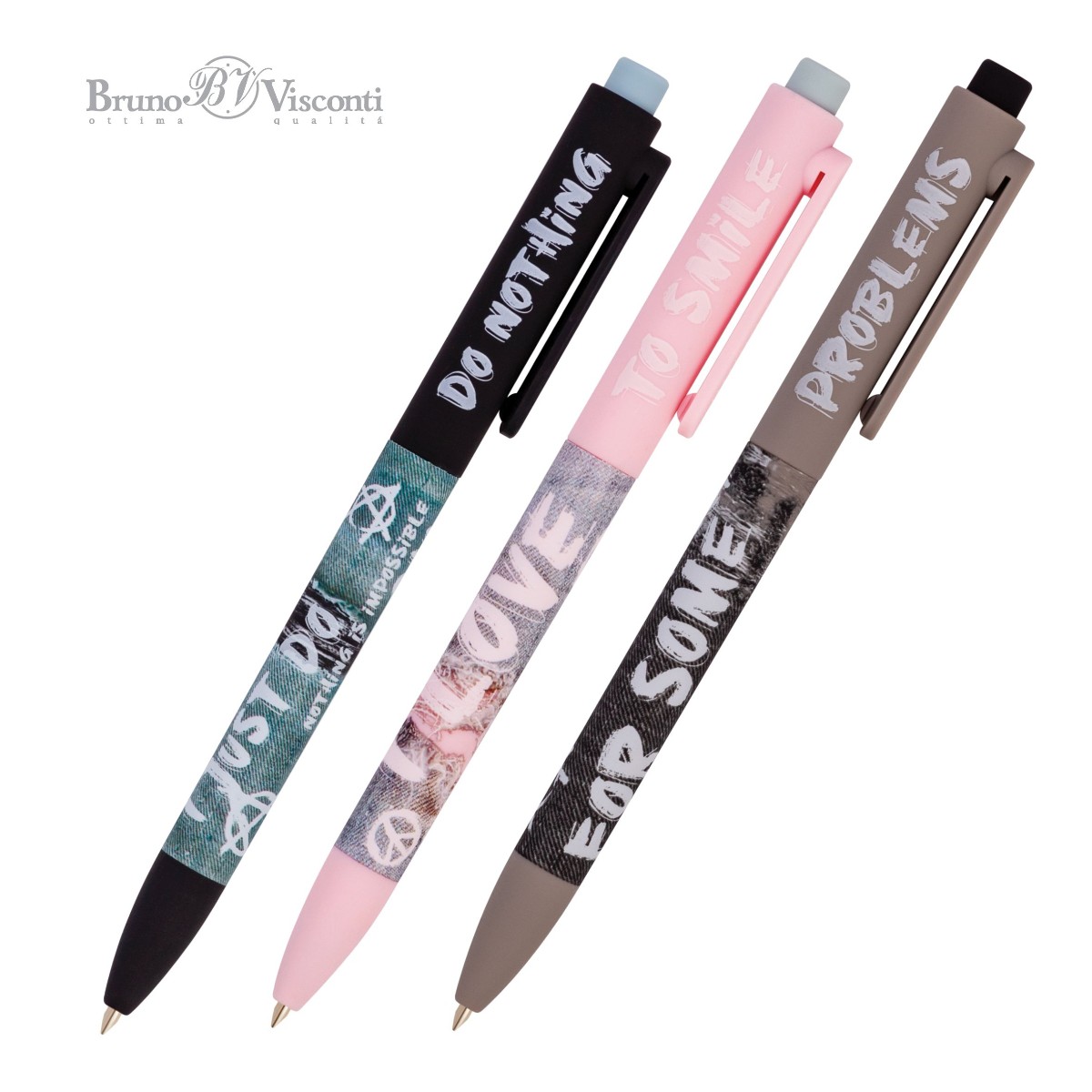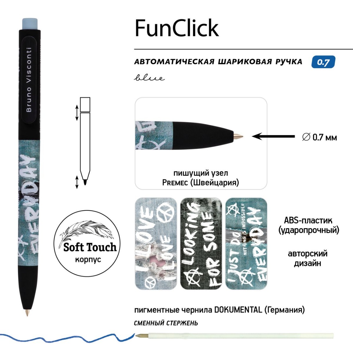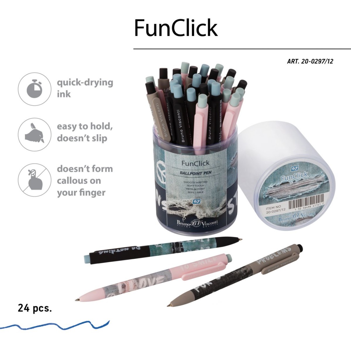 Ручка шариковая синяя BV FunClick Jeans 0,7мм принт