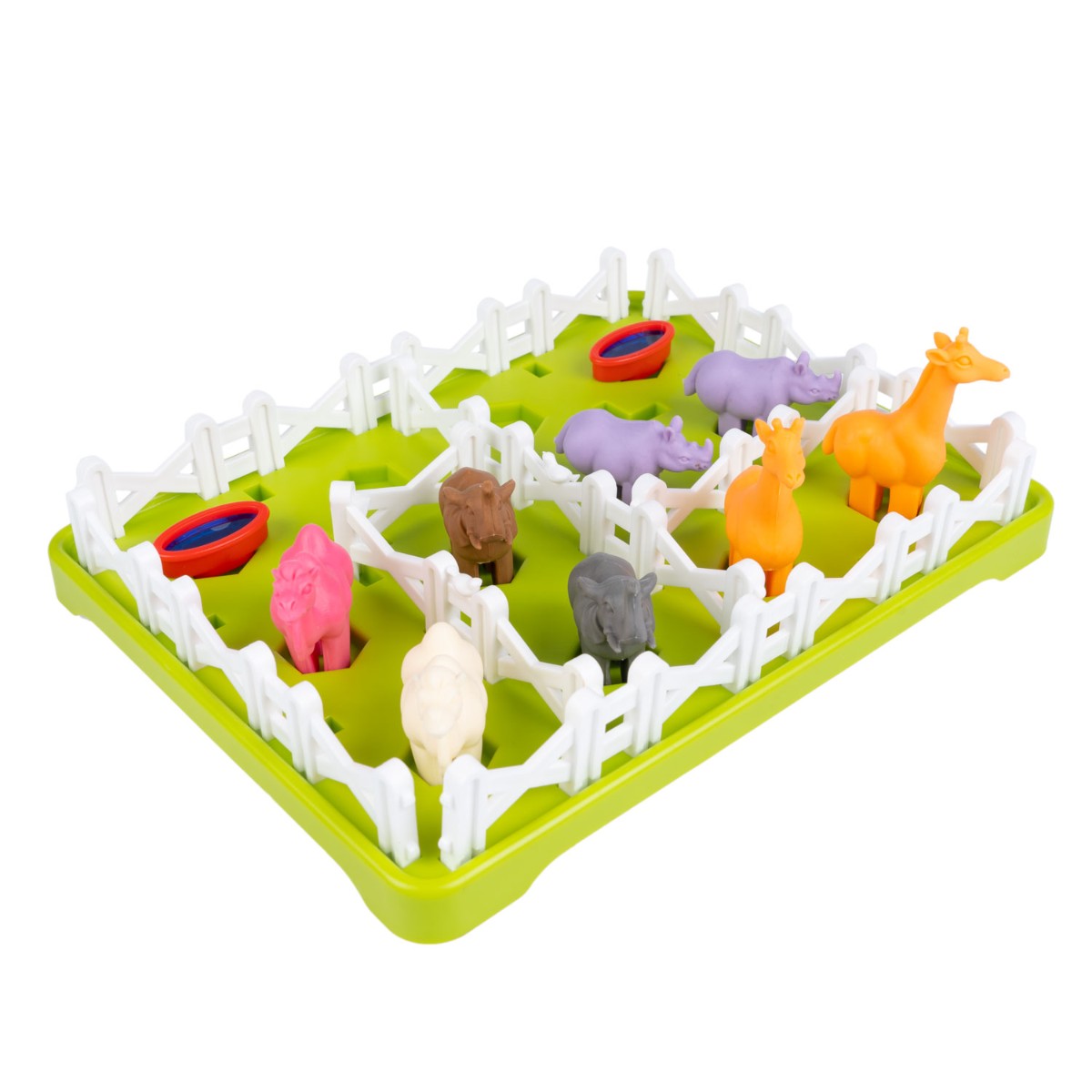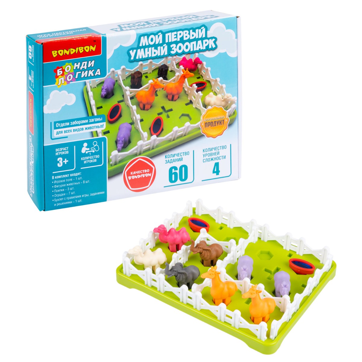 Порадуйте ребенка логической настольной игрой МОЙ ПЕРВЫЙ УМНЫЙ ЗООПАРК от Bondibon. Замечательная красочная головоломка серии БондиЛогика с забавными фигурками животных надолго увлечет маленьких мальчиков и девочек. Выберите одно из 60 увлекательных заданий. Поместите детали на игровое поле указанным образом. Разделите поле на отдельные загоны, используя заборы. Каждый вид животных должен находиться на отдельном участке. В более сложных заданиях каждый загон должен иметь еще и поилку. Постарайтесь найти единственное правильное решение. Постепенно переходите на более сложные уровни. Оригинальная игра от Бондибон способствует развитию зрительно-моторной координации движений, познавательных способностей, концентрации внимания, логического мышления и эмоционального интеллекта. В набор входят: игровое поле, 8 фигурок животных, 3 поилки, 7 оградок, буклет с правилами игры, заданиями и решениями. 4 уровня сложности Возраст 3+ Количество игроков 1