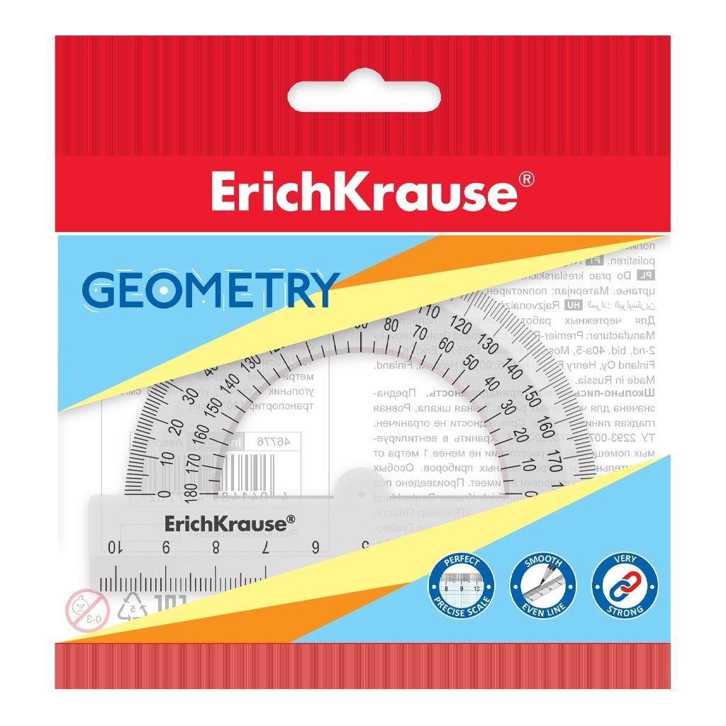 Транспортир 180гр с лин. 10см прозр EK Clear