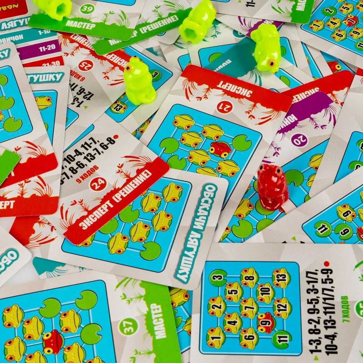 Захватывающая головоломка с яркими фигурками и игровым полем в виде пруда! Настольная логическая игра ОБСКАЧИ ЛЯГУШКУ серии БондиЛогика от Bondibon содержит 40 заданий разной сложности, которые позволят потренировать ум дошкольникам, школьникам и даже взрослым! Компактный формат подходит для путешествий – головоломка имеет небольшой размер, а для хранения фишек и карточек есть контейнер под игровым полем. Выберите карточку и поместите лягушек на кувшинки согласно заданию. Ваша цель – перепрыгивать и удалять зеленых лягушек до тех пор, пока на игровом поле не останется одна главная лягушка алого цвета. Игра развивает логику, мышление, математические способности и внимание. В набор входят: игровое поле, алая лягушка, 11 зеленых лягушек, 40 карточек с заданиями и решениями, карточка с правилами игры. Возраст 6+ 4 уровня сложности Количество игроков 1 Головоломка ОБСКАЧИ ЛЯГУШКУ от Бодибон – необычный подарок для ребенка на день рождения, к окончанию четверти и по любому другому поводу.
