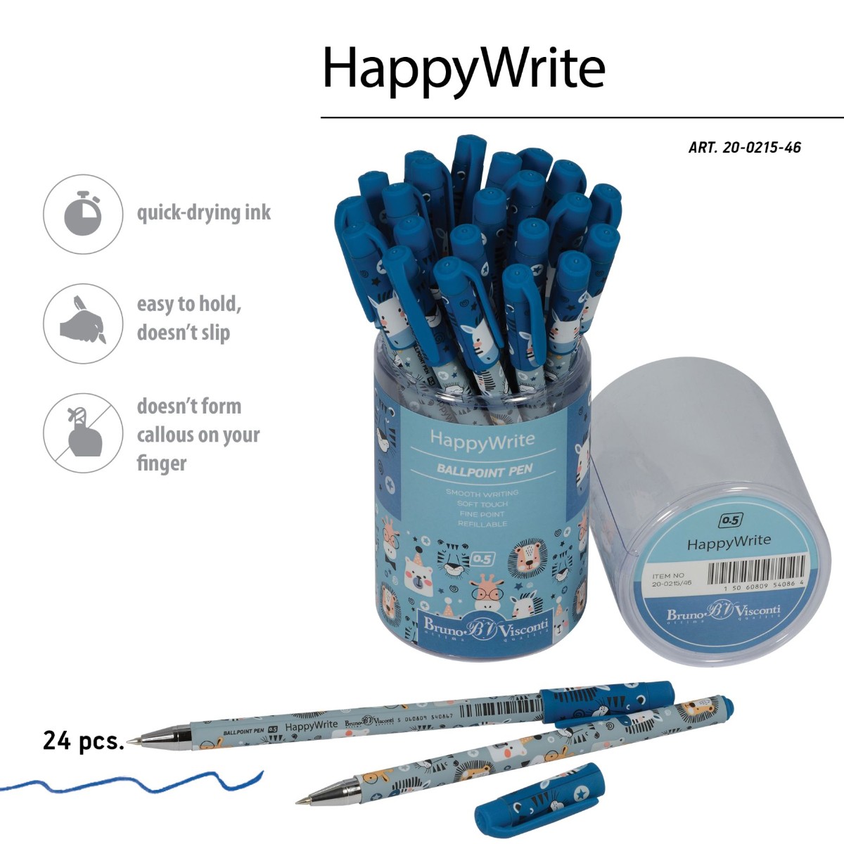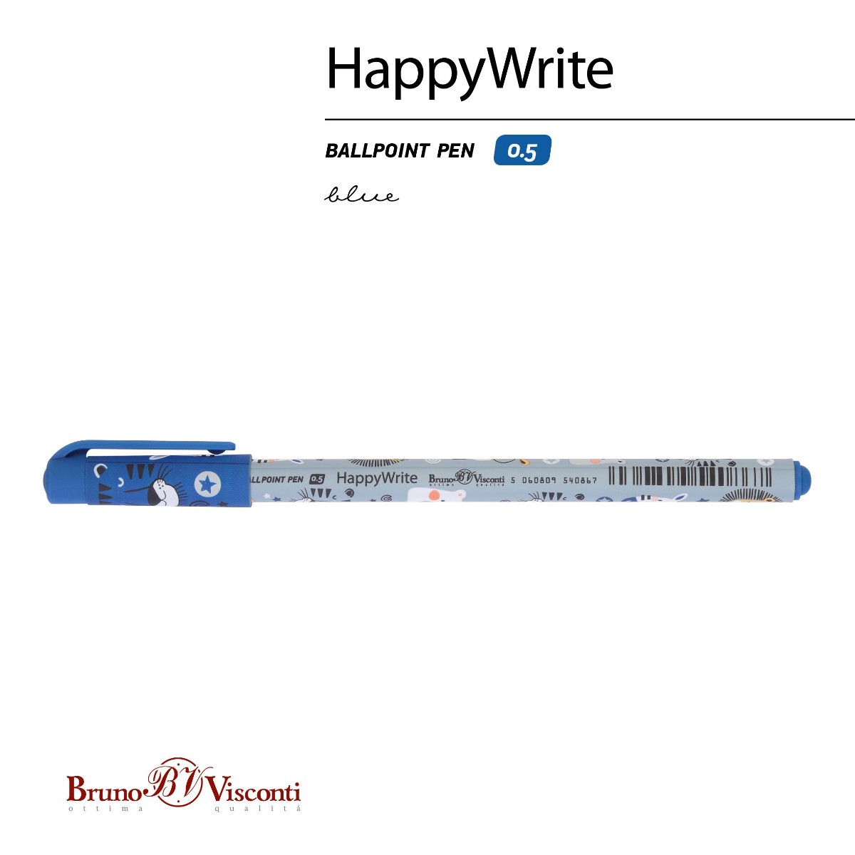 Ручка шариковая синяя BV HappyWrite Милые зверушки 0,5мм