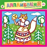 В набор входят: цветная основа с контуром рисунка и клеевым слоем, 6 пакетиков цветного песка, картинка-образец, декоративные глазки.