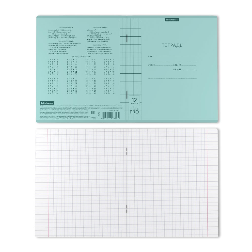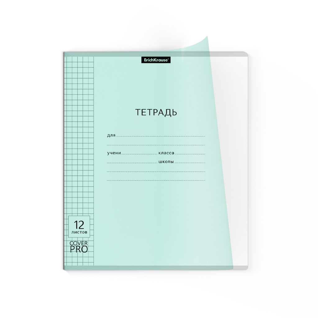 Тетрадь 12л клетка Однотонная. Мятная пласт обложка