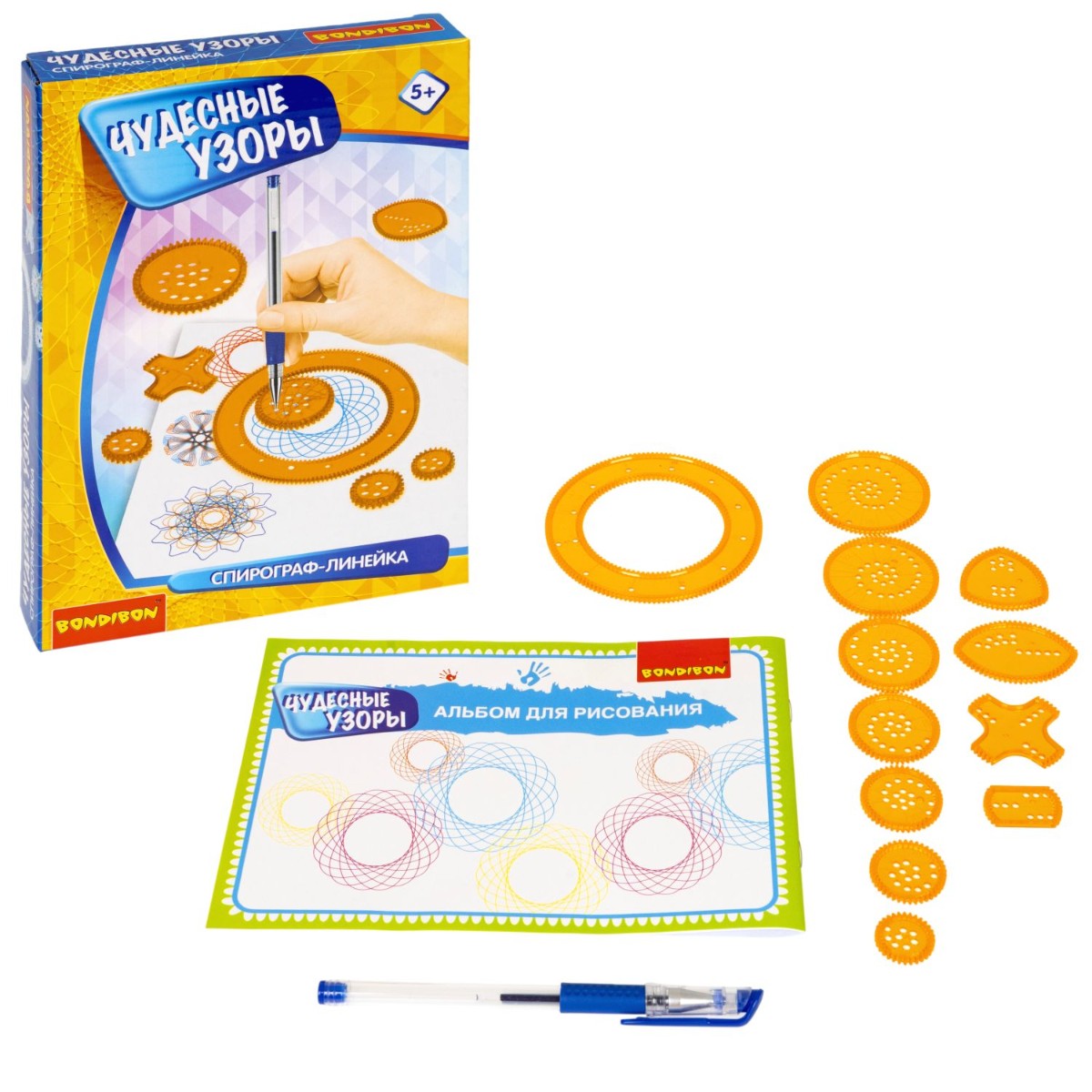 Набор для творчества спирограф-линейка "Чудесные узоры" Bondibon - все, что нужно для развития творческих способностей и фантазии. Попробуйте, и убедитесь в этом сами!