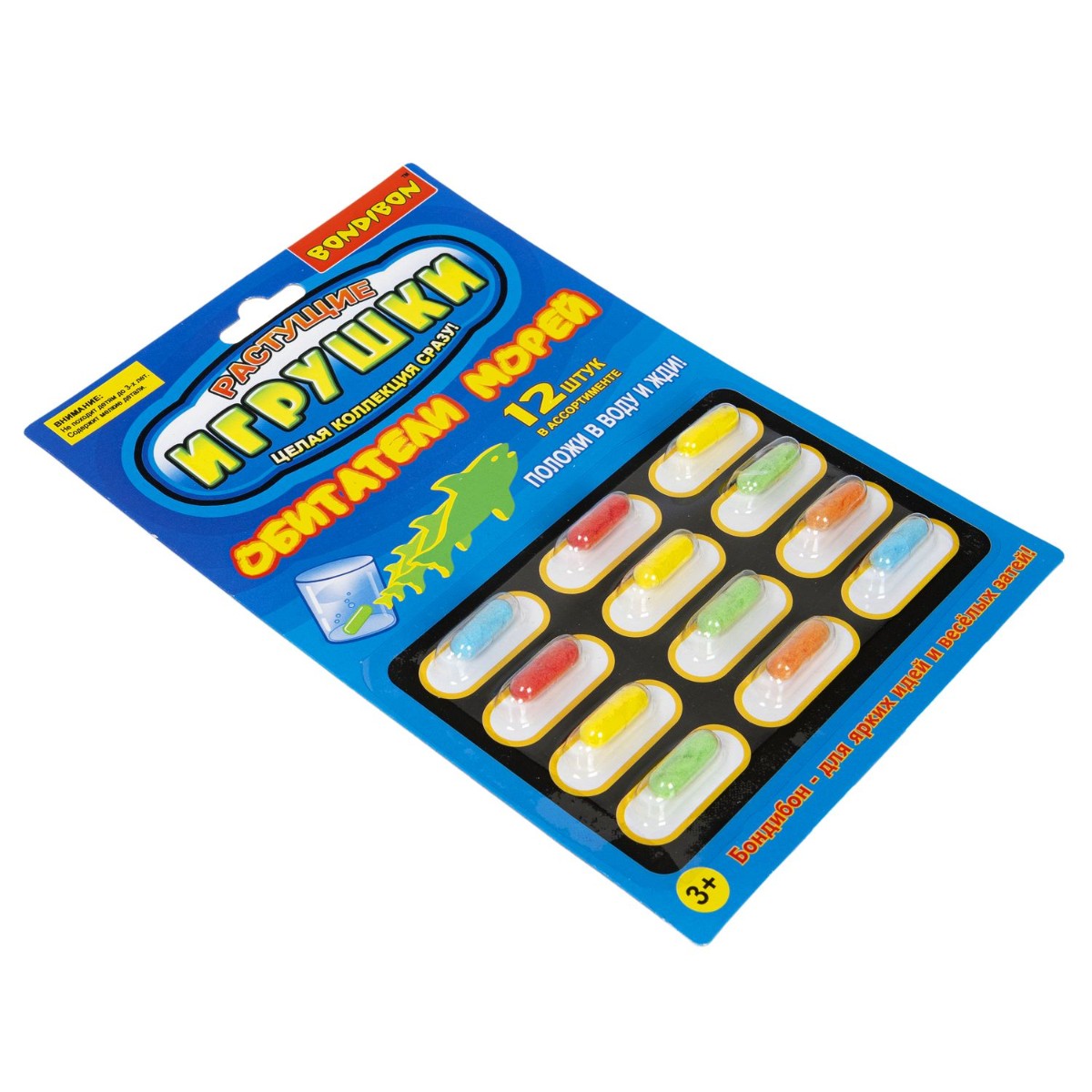 Маленькое чудо превращения прямо у Вас дома – осталось просто добавить воды, а набор растущих в воде игрушек "Обитатели морей" 12 капсул Bondibon все сделает сам.