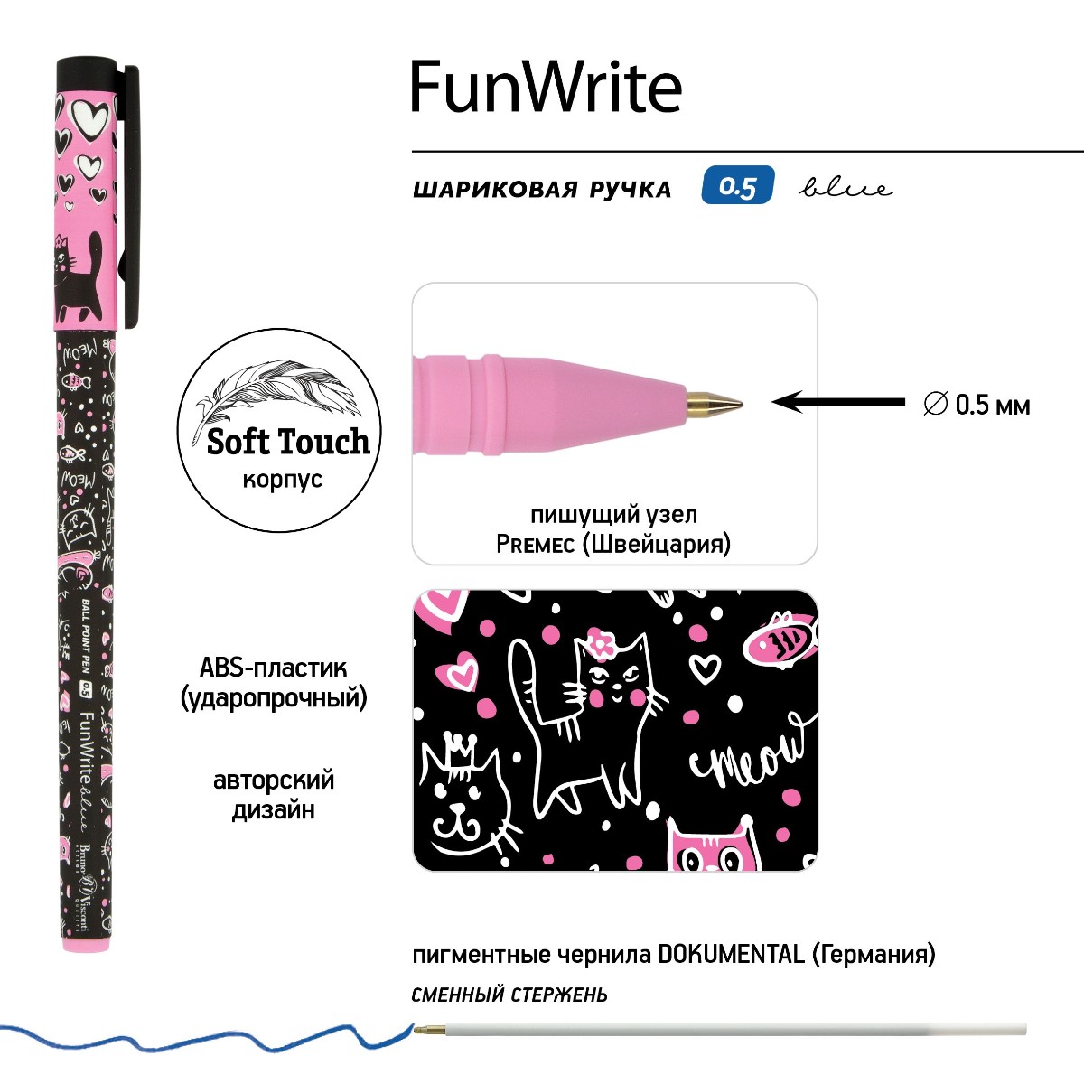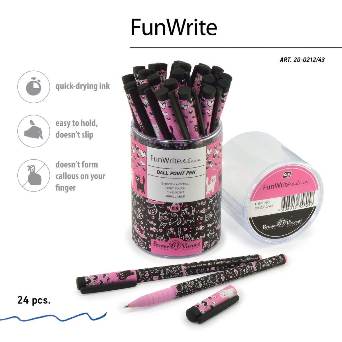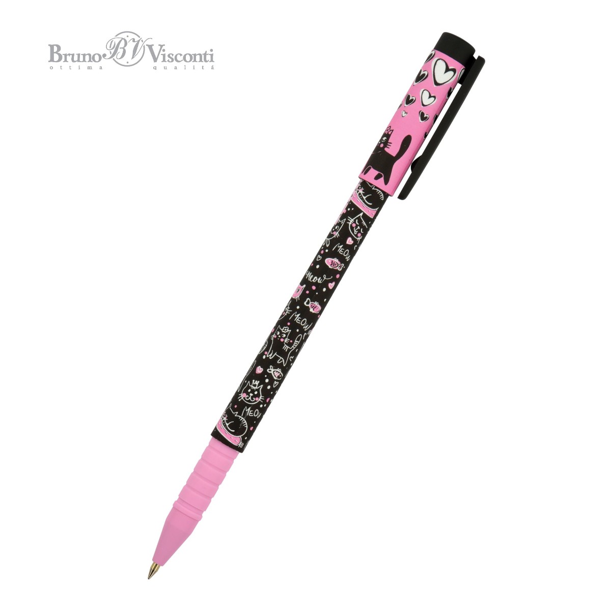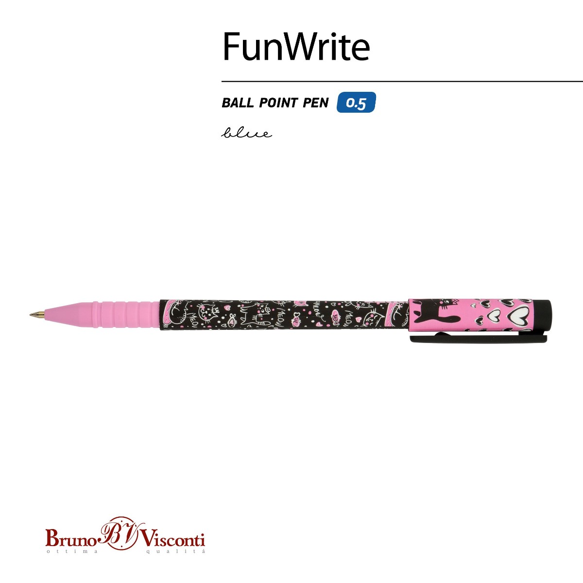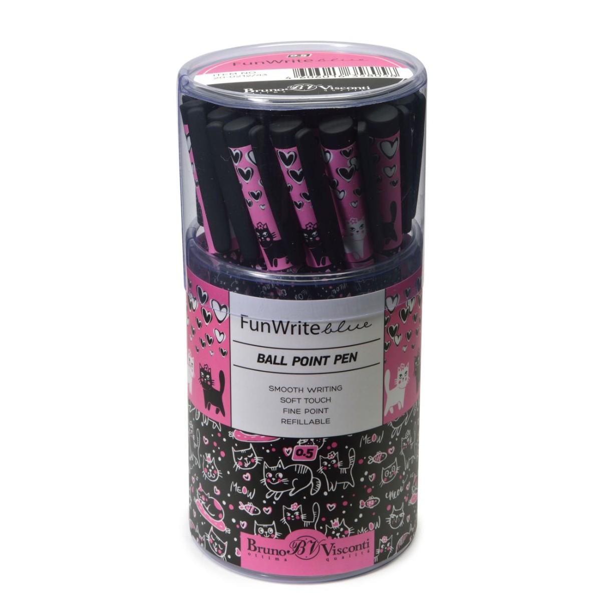 Ручка шариковая синяя BV FunWrite Розовые котята контурные