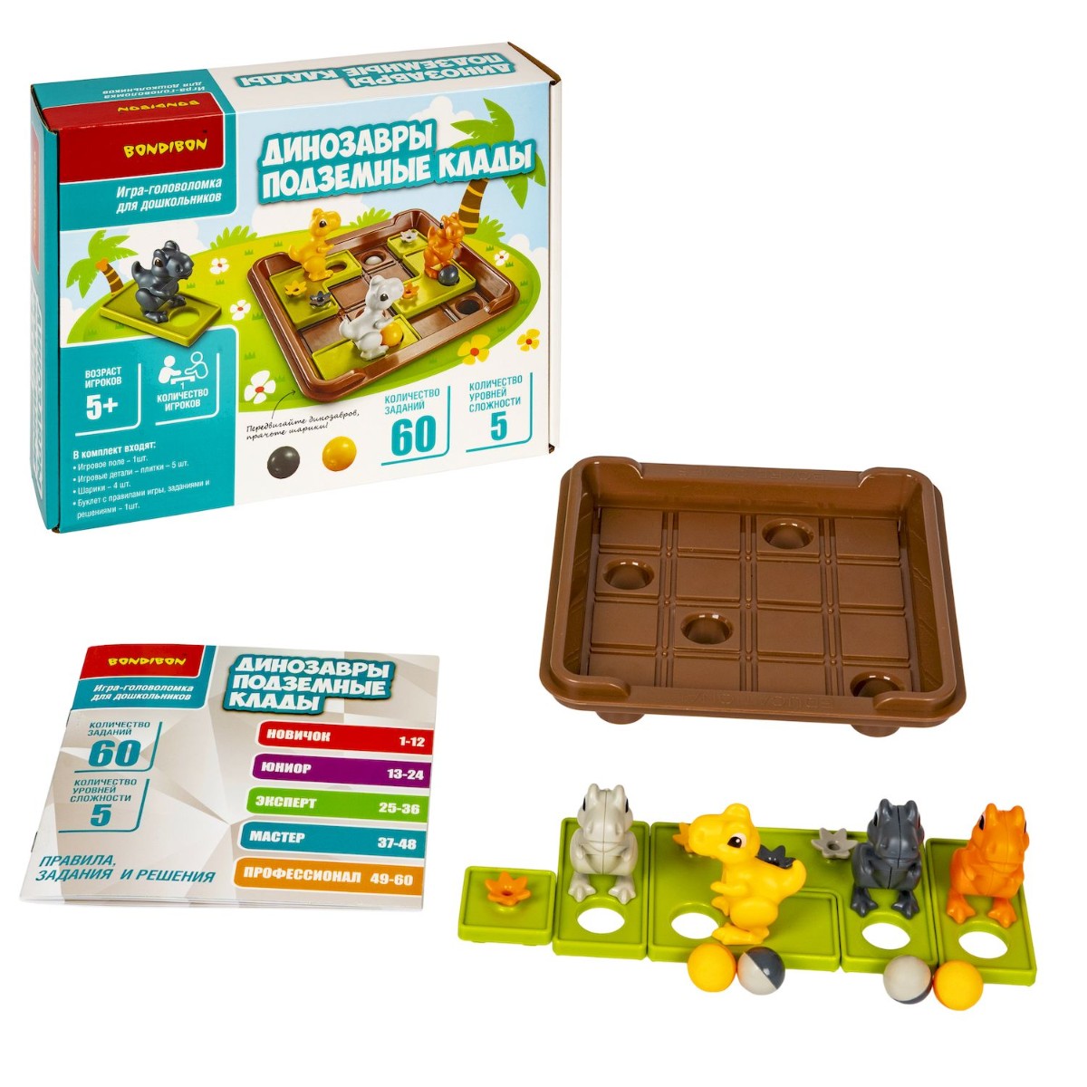 По правилам игры "Динозавры. Подземные клады" Вам необходимо спрятать шарики, перемещая динозавров по игровому полю. Но все не так просто! Вас ждут 60 заданий и целых 5 уровней сложности. На самом сложном уровне можете позвать знакомых взрослых археологов, чтобы уж точно помогли. Хотя, если Вы пройдете все уровни поэтапно, то и сами прекрасно справитесь. Ведь, головоломка из серии "Бондилогика" развивает логическое мышление и улучшает концентрацию внимания.