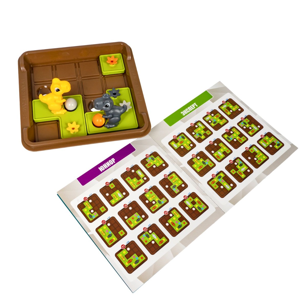 В комплекте: игровое поле, 5 игровых деталей-плиток, 4 шарика, буклет с правилами игры, заданиями и решениями.