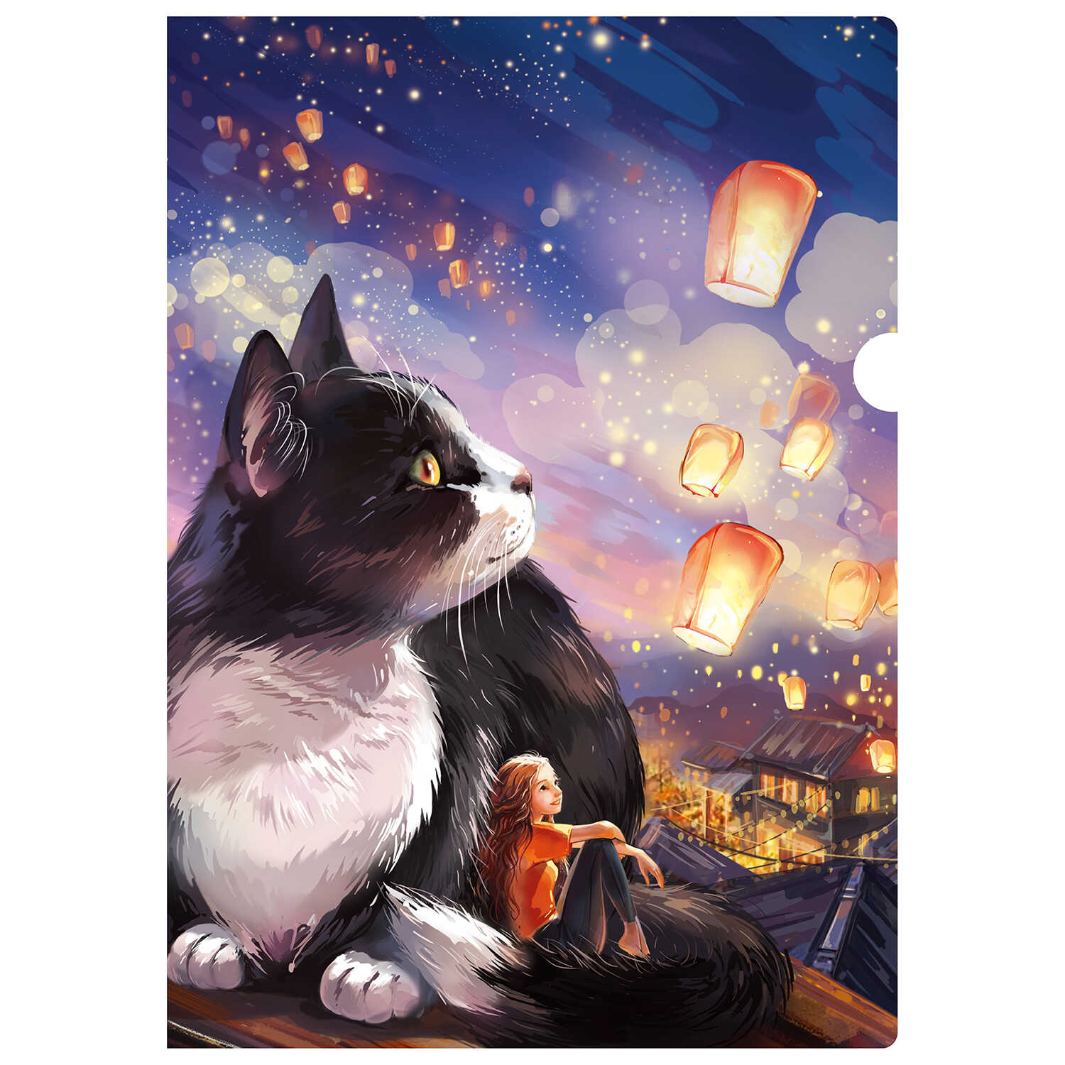 Папка-уголок 1 отд с рис Кот с фонариками
