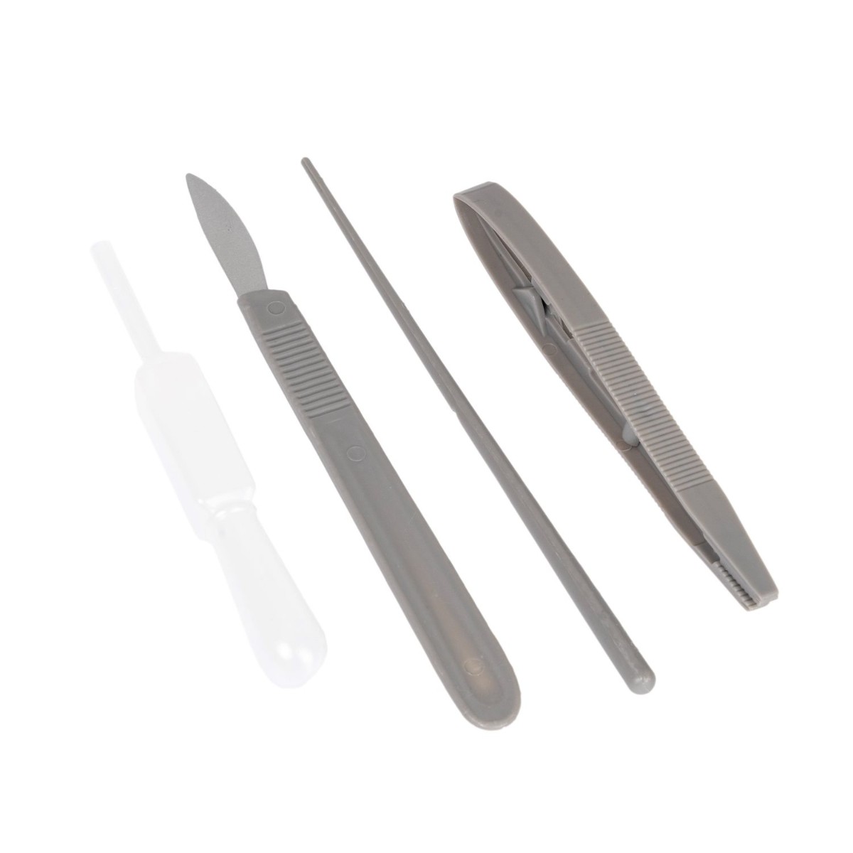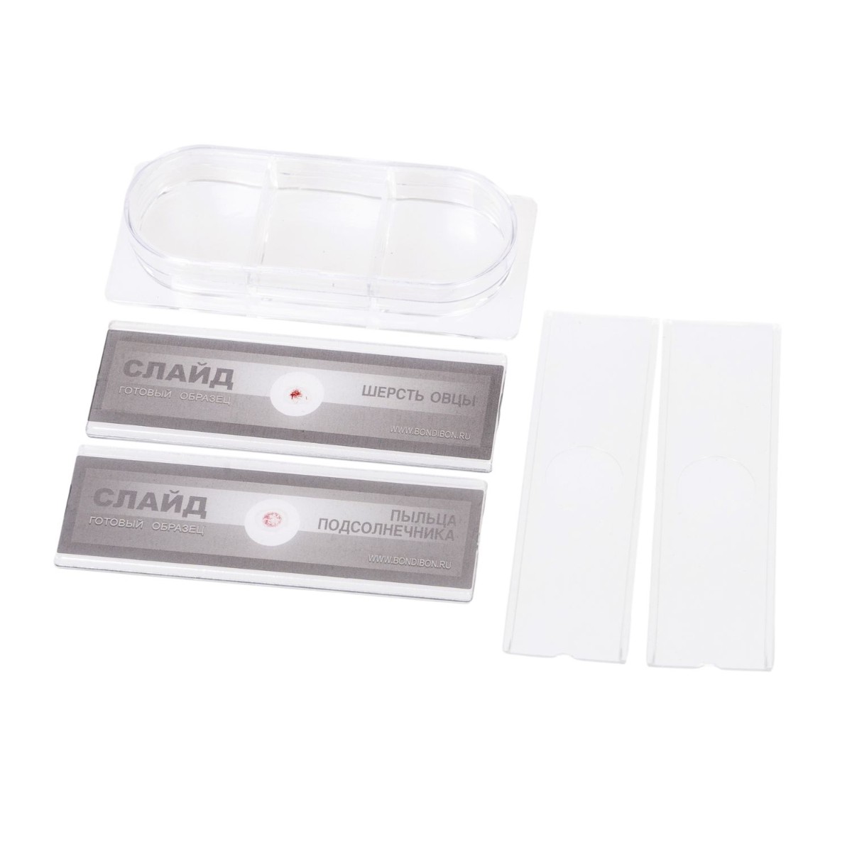 В набор входят пинцет, палочка для размешивания, нож, пипетка, 4 слайда: 2 с готовыми образцами и 2 пустых, контейнер, баночка для образцов, инкубаторий, отвертка и инструкция. Для работы микроскопа потребуются 2 батарейки АА (не входят в набор).