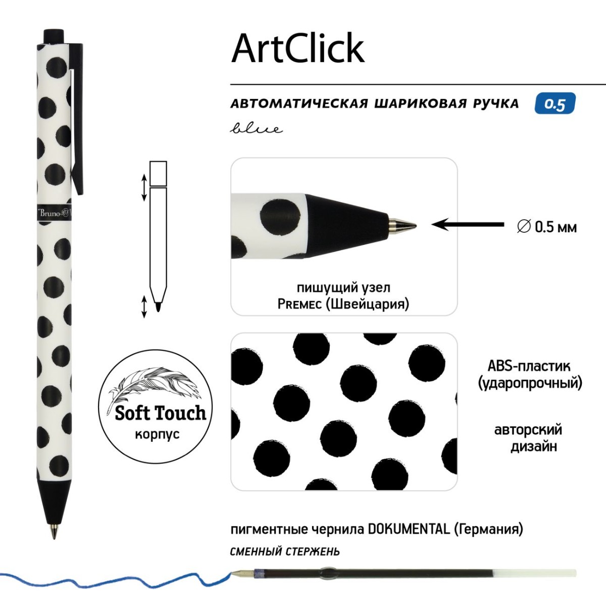 Ручка шариковая синяя BV ArtClick Black Polka Dots 0,5мм принт авт