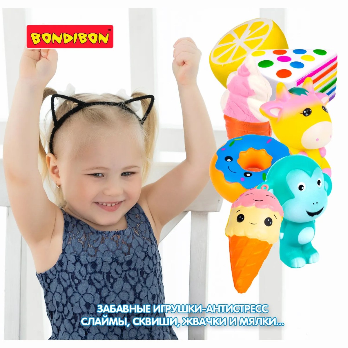 детям, и взрослым! Сквиш супер мягкий, приятный на ощупь и успокаивающий! Сожмите игрушку и наблюдайте, как легко она восстанавливает форму. Почувствуйте приятный аромат. Такое простое развлечение приносит огромную пользу! Замечательный сквиш с запахом помогает снять напряжение, оказывает благоприятное воздействие на нервную систему, снижает уровень тревоги, сокращает стресс, а также способствует развитию мелкой моторики, фантазии. Придумывайте с аппетитным рожком мороженого различные сюжеты. Например, играйте в магазин или кафе. А еще небольшую забавную мялку удобно брать с собой. О качестве и безопасности позаботился Бондибон. Возраст 3+
