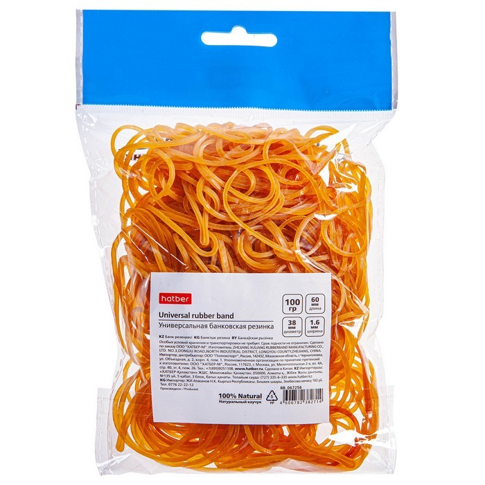 Резинка банковская 100гр d=60мм Hatber натуральная