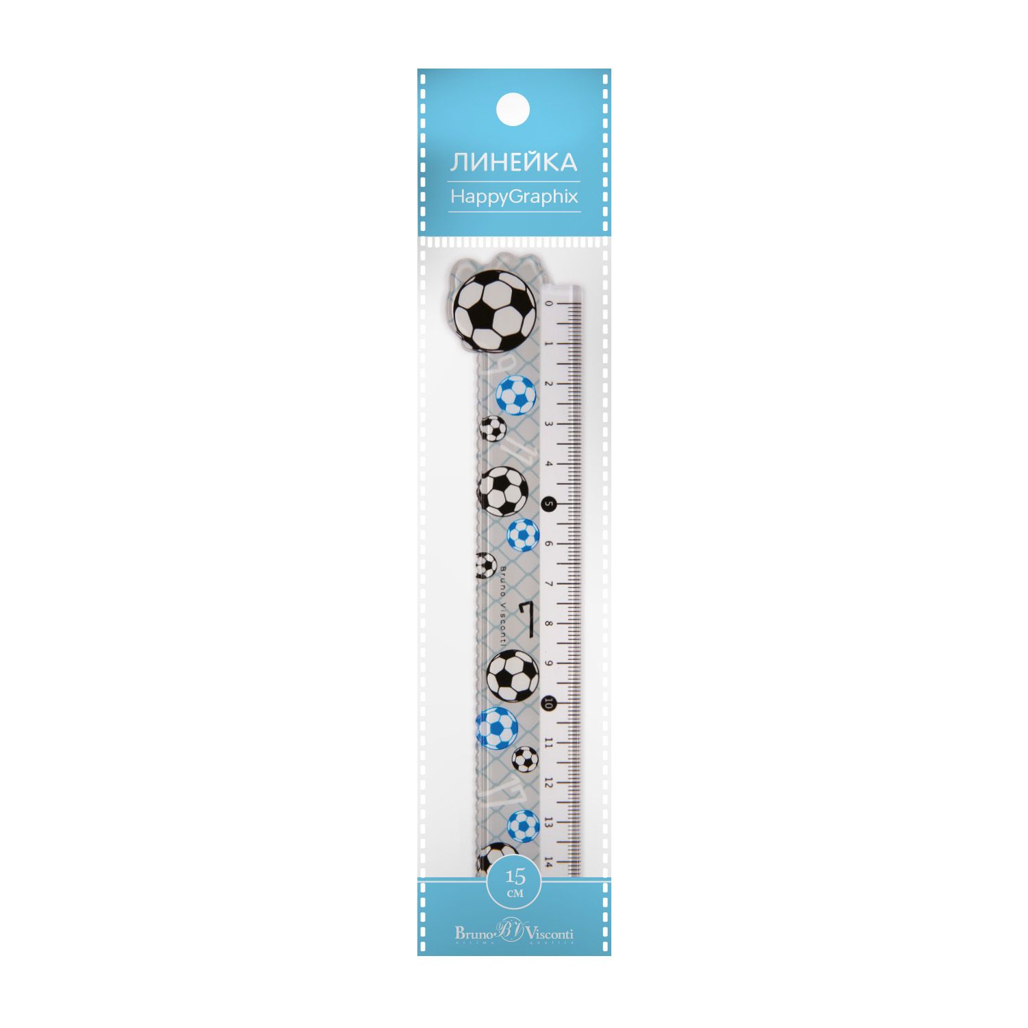 Линейка пласт. 15 см с рис BV Футбол (с волн. краем)