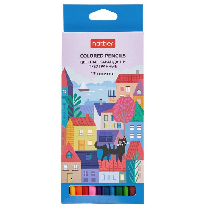 Карандаши цветные 12 цв Hatber Городок трехгран